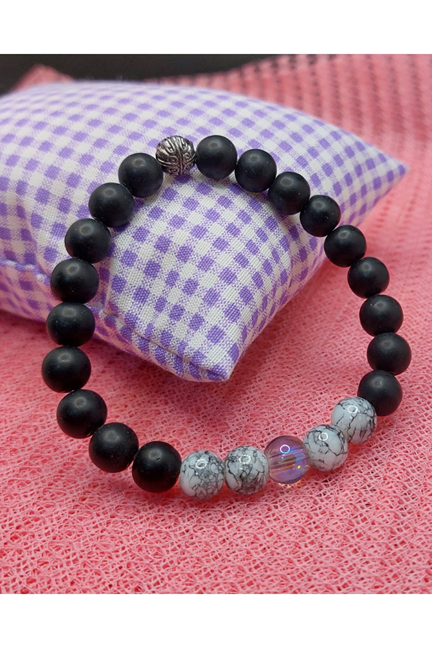 - Doğal taş kullanımı sayesinde her bileklik benzersiz ve otantik bir görünüm sunar; - Oniks taşı, zarif ve şık tasarımıyla dikkat çekerken, havlit bileklik ile birleştiğinde modern ve sofistike bir stil oluşturur; - Doğal taş materyaliyle hem dayanıklılık hem de estetik bir dokunuş sağlar; uzun süreli kullanım için idealdir; - Siyah rengi, her türlü kıyafetle kolayca uyum sağlayarak günlük veya özel günlerde şıklığınızı tamamlar;