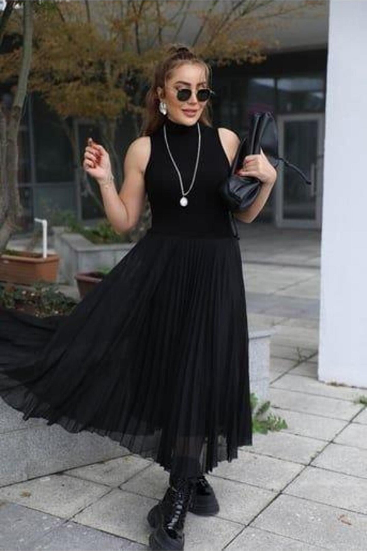 Kadın Triko Plise Ve Tül Detay Iki Parça Elbise