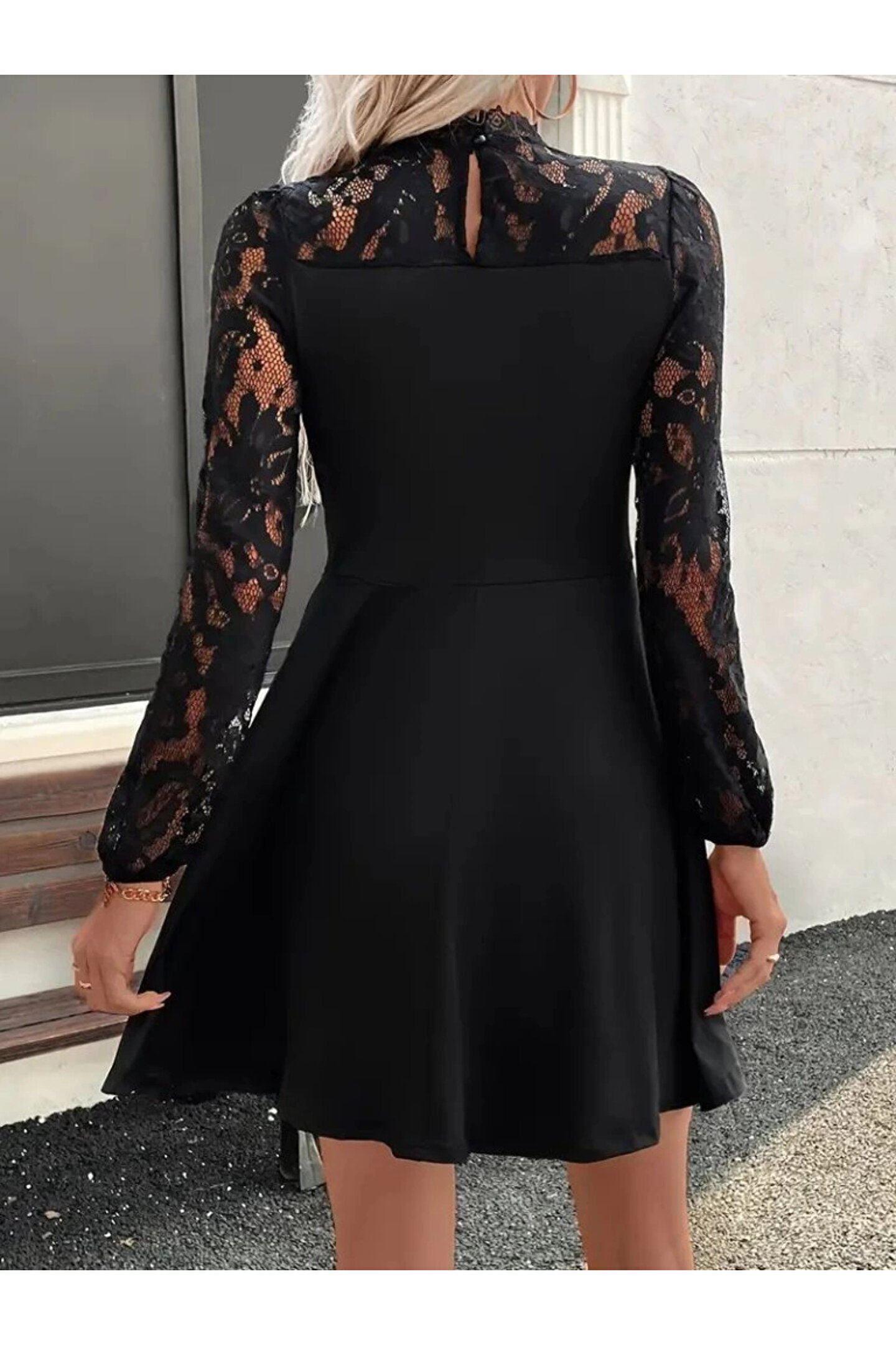 Kadın Uzun Kollu Dantelli Kloş Mini Ithal Krep Elbise