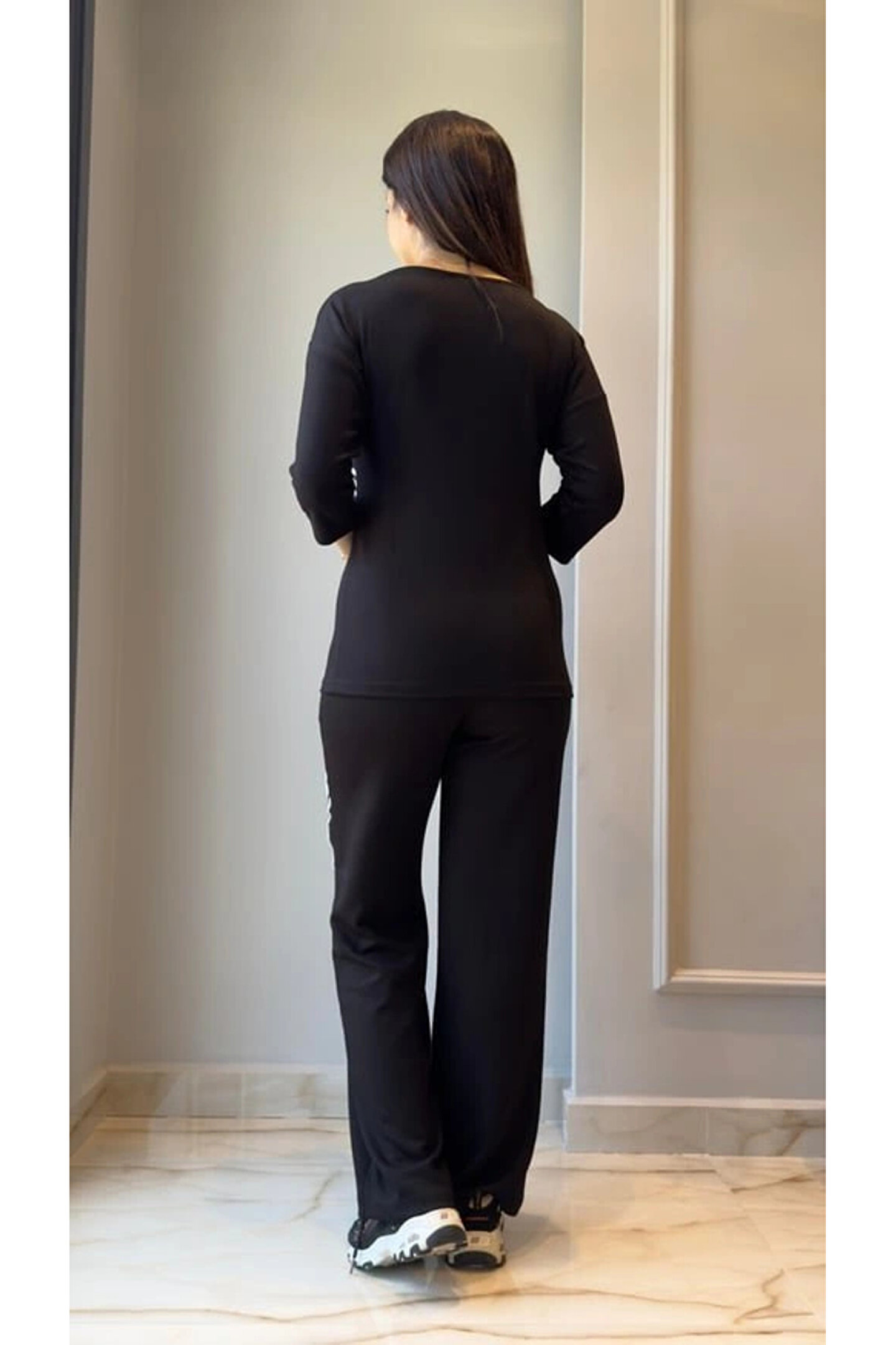 Kadın Uzun Kollu Truvakar Kol Tek Omuz çapraz şerit Detaylı Ribanalı Viskon Iki Iplik Bluz Ve Pantolon Ikili Takım