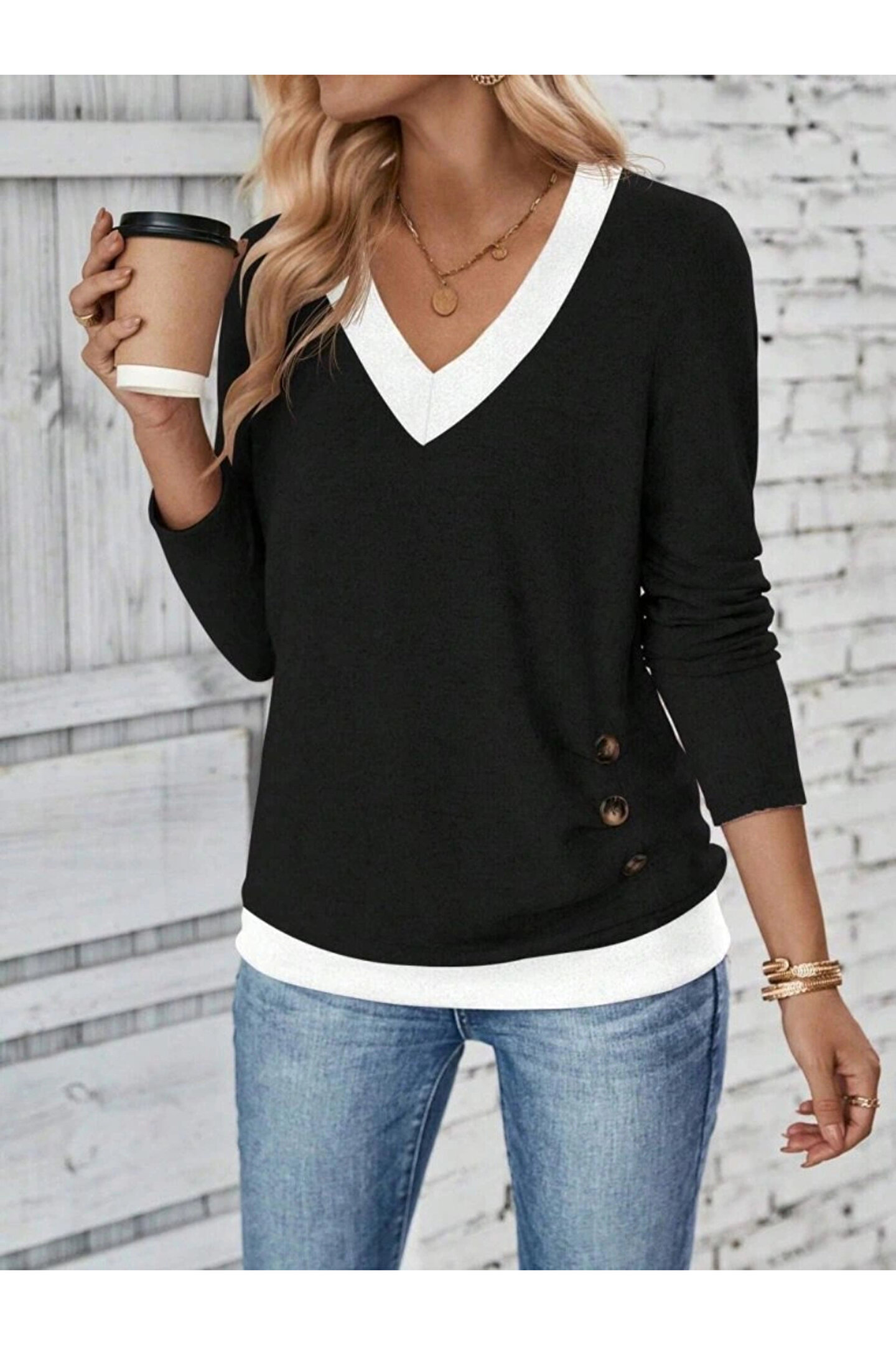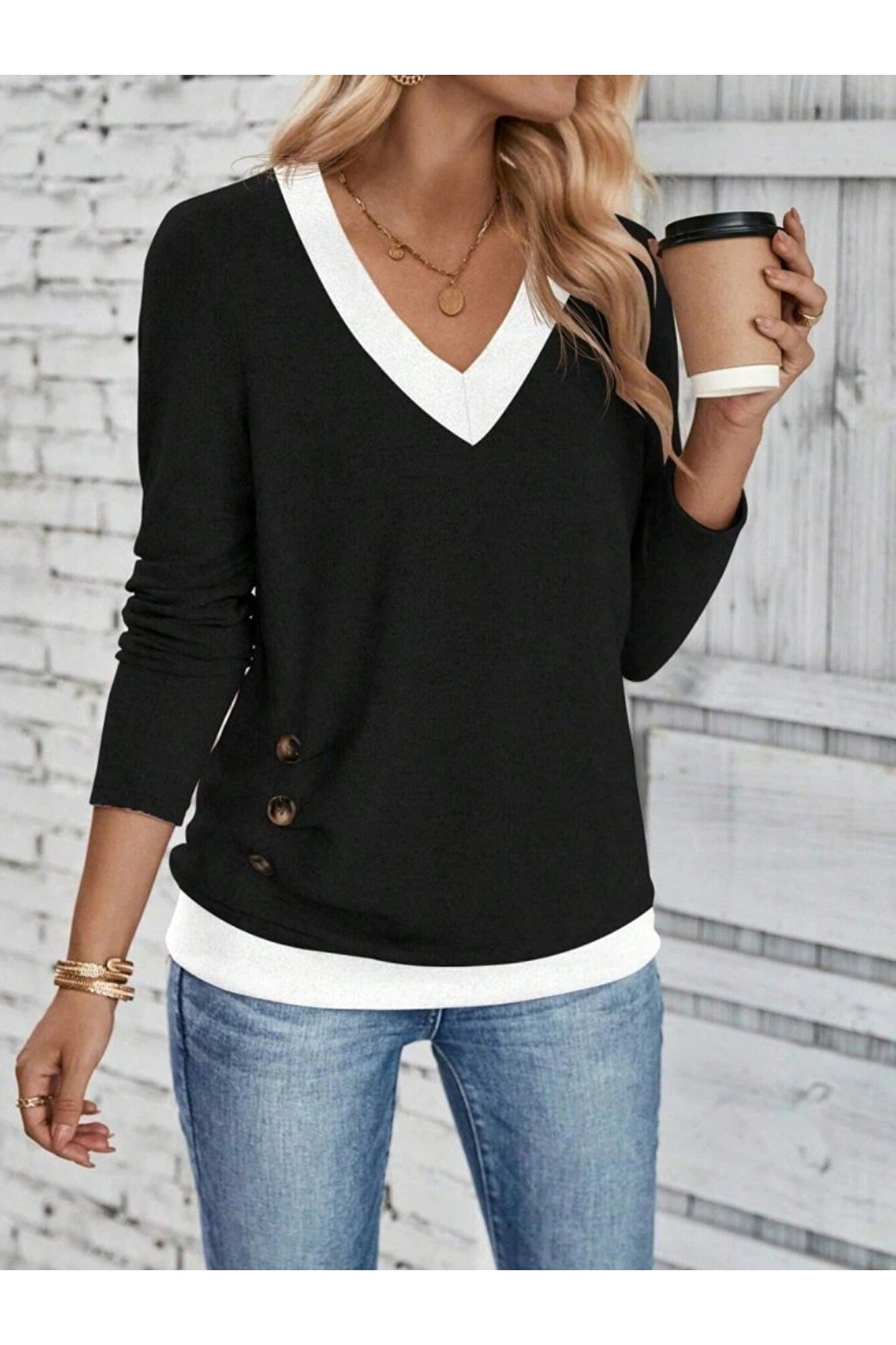Kadın Uzun Kollu V Yakalı Yandan Düğmeli Yün Viskon Bluz