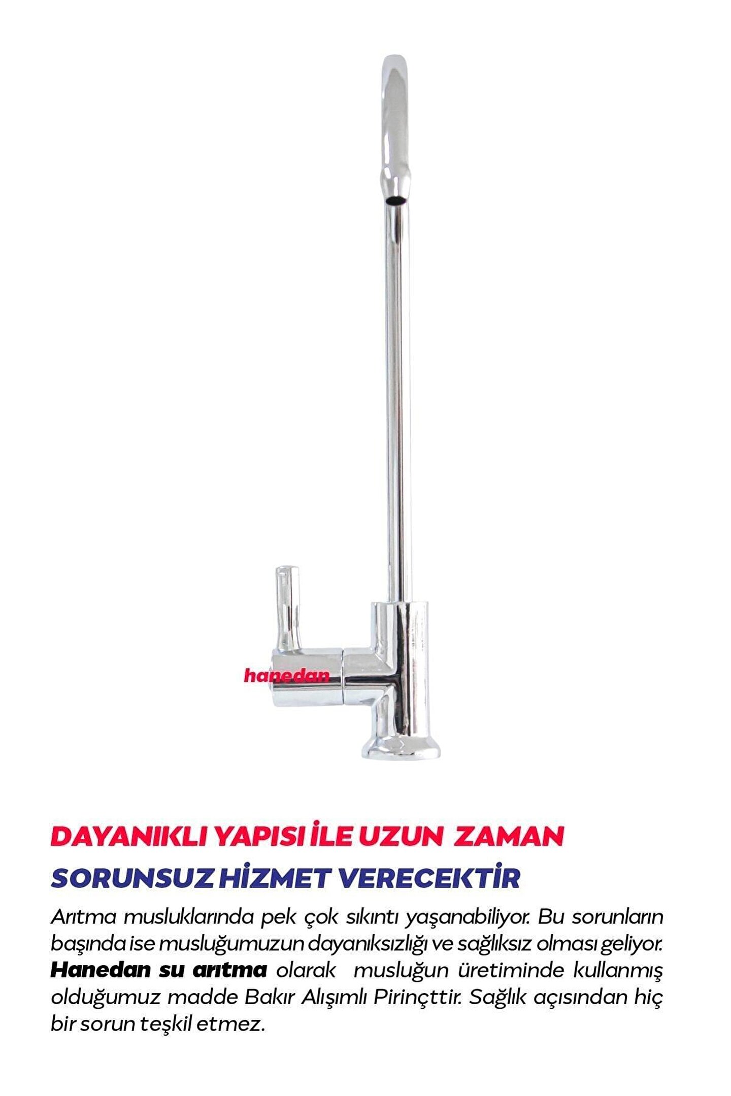 ÖNEMLİ BİLGİLENDİRME Merhabalar Hoş geldiniz arıtma musluğu almadan önce siz kullanıcıları biraz bilgilendirmek istiyoruz.; ; Son zamanlarda satıcıların biz üreticilere fiyat konusunda yetişmeleri için daha ucuz ve sağlığa zararlı malzemelerle üretilmiş muslukları tercih ettiklerini fark ettik lütfen bu tarz satıcılara itibar etmeyiniz.; ; Musluk satın alırken dikkat etmeniz gereken bazı hususlar var onlara değinmek istiyoruz.; ; • Hammaddesi “ zamak ” olan musluklar sağlığa zararlıdır.; ; Hammeddesi Bakır Alaşımlı Pirinç ve Sarı olan muslukları tercih ediniz.; ; • Su geçen yerlerin metal olmamasına dikkat etmelisiniz.; ; • Piyasada Çevir - Aç modelleri var (yıldız model) lüks musluk adı altında satılıyor.; ; Çevir aç modeller zamanla yıpranıp su sızdırma olasılığı çok yüksek modellerdir.; ; MUSLUK ALIRKEN NELERE DİKKAT ETMELİYİZ ? SIZDIRMAZ OLMASINA Belkide batarya ve muslukların zaman içerisinde bizi en çok kızdıran durumlarından birisi su sızdırmasıdır.; ; Hanedan olarak sızdırma oranlarını sıfıra indirerek %100 garanti ile Lüks Musluğumuzu gönül rahatlıyığla kullanabilirsiniz.; ; DAYANIKLI OLMASINA Zaman içerisinde aşınmaması için ürünün belirli kalite standartlarında olması gerekmektedir.; ; En belirgin standart ise ürünün hammaddesidir.; ; Hanedan Musluğumuzun üretiminde kullanılan hammadde en sağlıkı olan Bakır Alışımlı Pirinçtir.; ; HİJYENİK OLMASINA İçinden geçen suyun herhangi bir metal ile temas etmemesini sağlar ve musluk iç gövdesinde bakteri üremesini önler.; ; ; Birden fazla satıcı tarafından satışa sunulan ürünlerin satıcıları ürün için belirledikleri fiyata, satıcı puanlarına, teslimat statülerine, ürünlerdeki promosyonlara, kargonun bedava olup olmamasına ve ürünlerin ile teslim edilip edilememesine, ürünlerin stok ve kategorileri bilgilerine göre sıralanmaktadır.;