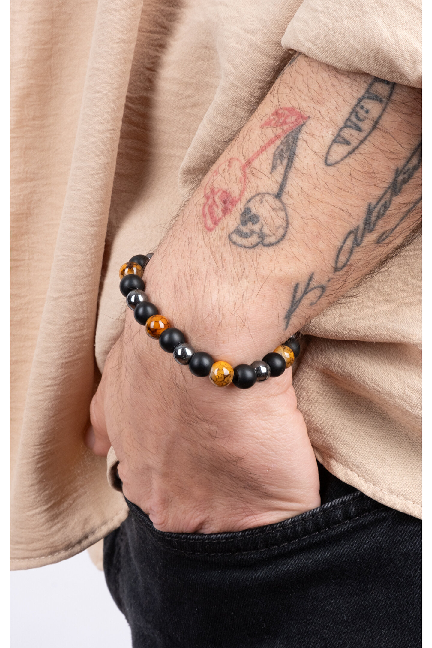 - Doğal taş kullanımı sayesinde hem şıklığı hem de enerjisi bileğinizde taşıyın.; - Kaplangözü, Oniks ve Hemitite sahip bu bileklikle enerjinizi dengeleyin ve koruyun.; - Unisex tasarımı ile herkes tarafından rahatlıkla kullanılabilir; cinsiyet ayrımı yapmaz.; - Yetişkin yaş grubuna hitap eden bu bileklik, günlük kullanım için idealdir.; - Doğal taşların estetiğiyle bileğinizde zarif bir görünüm sağlayın.