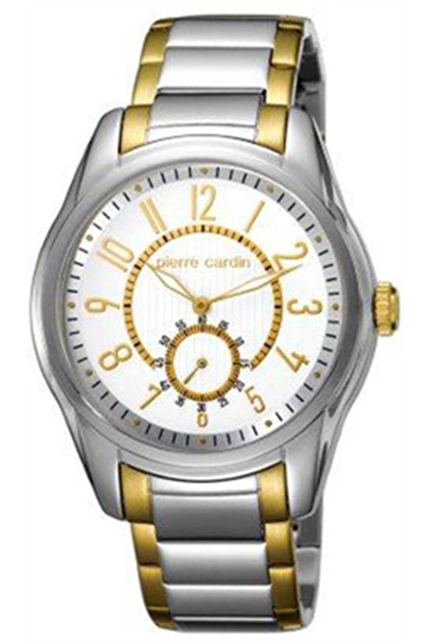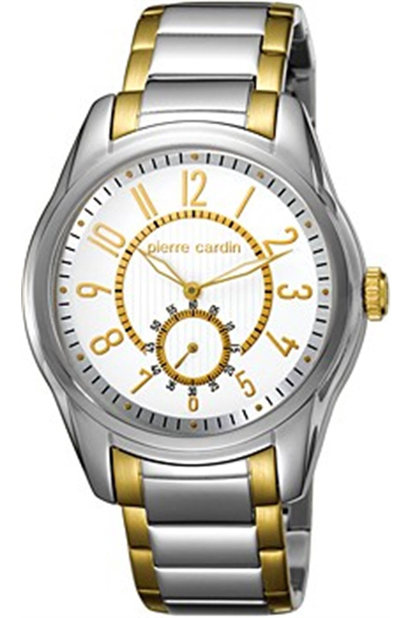 Marka: Pierre Cardin Cinsiyet : Erkek Makine Tipi: Quartz Kordon Tipi: Çelik Kordon Rengi: Sarı Beyaz Kasa Tipi: Çelik Kasa Rengi: Çelik Kasa Şekli Yuvarlak Kadran Şekli: Yuvarlak Kadran Rengi: Beyaz Cam Tipi Mineral Kasa Çapı 43mm Su Geçirmezlik 30 Takvim: Var Alarm Taş Yok