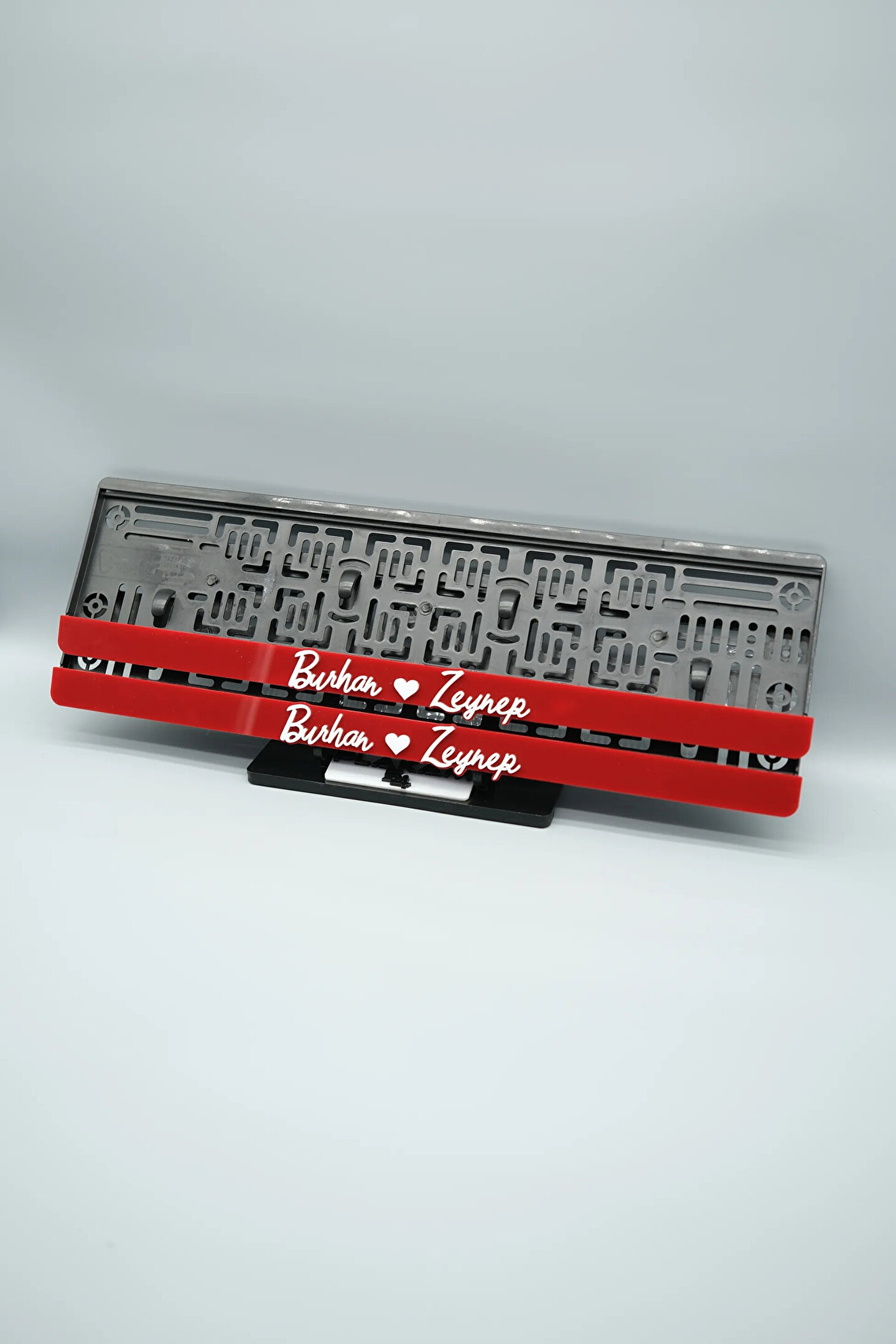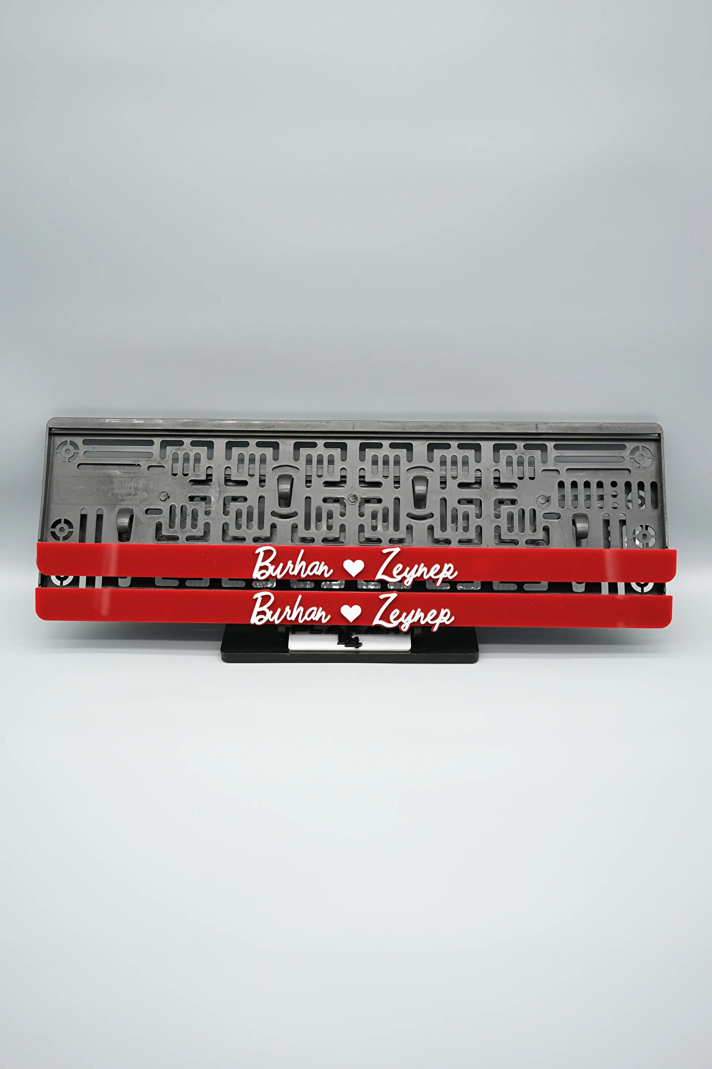 Plakam54 EL YAZI FONTLU KALPLİ KIRMIZI BEYAZ ÇİFTLERE ÖZEL İSİMLİ PLEKSİ ARABA PLAKALIĞI