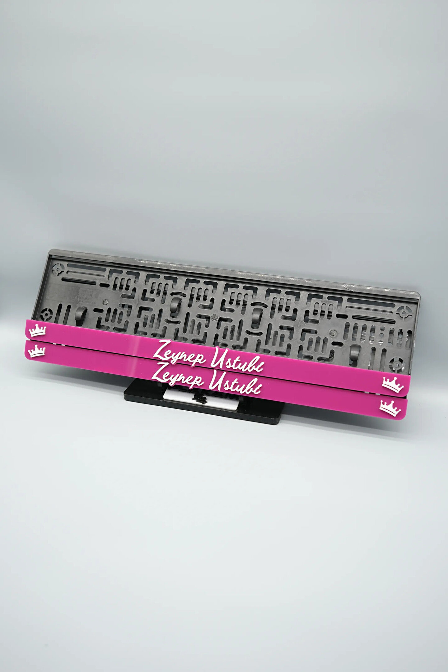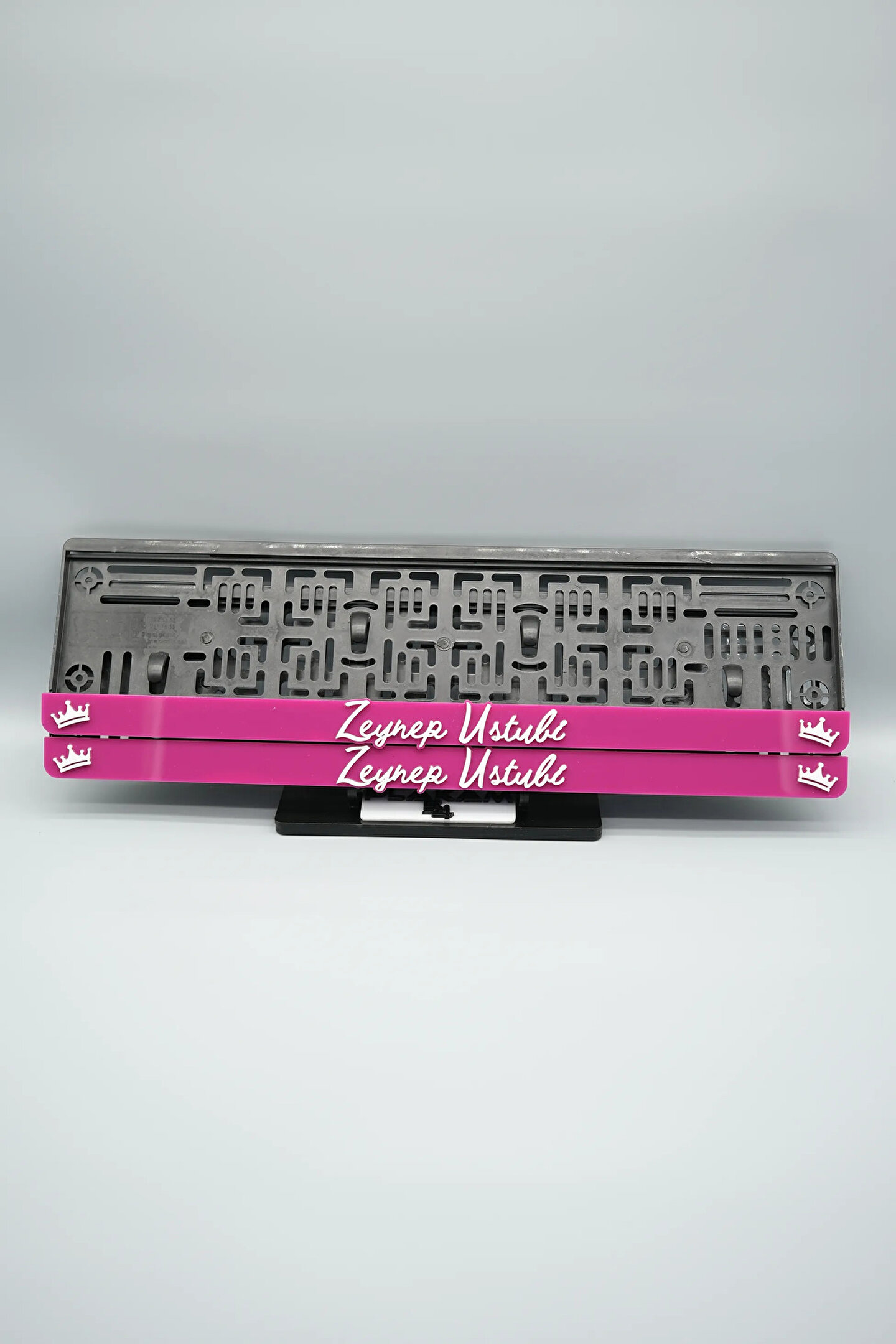 Sıradanı Sıradışıya Çevir! Lazer Kesim Plakalıklarımızla Tanışın!; Özellikler:; Alt çıta ve plakalık olmak üzere toplam 4 parçadan oluşur.; 3D kabartmalı veya gümüş tasarımı ile dikkat çeker.; UV baskı değil, silinme veya dökülme yapmaz.; Standart araba plakası ölçülerindedir (11x52 cm plakalar için uygundur).; Kalite ve Şıklığı Bir Arada Sunuyoruz:; Ürünlerimiz, parlak 1. sınıf kalitede pleksiyi lazer kesim kullanılarak özel yapıştırıcılarla birleştirilerek üretilir.; Sadece plaka değil, aracınıza özgü bir tarz katmanın en havalı yolu!; Dayanıklılıkta Sınır Tanımıyoruz:; Uzun süreli kullanıma uygun olan plakalıklarımız, özel yapıştırıcı teknolojisi ile birleşerek aracınızın stilini korur.; Silinme veya dökülme gibi sorunlarla karşılaşmadan uzun ömürlü bir deneyim sunar.; 3D Kabartmalı Tasarım:; Plakalıklarımızın eşsiz 3D kabartma tasarımı, sizi diğer araçlardan farklı kılacak.; Görsel şölenimiz aracınıza estetik bir dokunuş katıyor.; Kolay Montaj, Büyük Etki:; Aracınıza özel tasarımı hemen kullanmaya başlamak için ürünlerimizin montajı oldukça basittir.; Size zahmetsiz bir kişiselleştirme deneyimi sunuyoruz.;Gerçek Görseller, Gerçek Ürün:; ürün görsellerimizle alacağınız ürün arasında çita malzeme fark yok.; Ürün özellikleri ile ilgili olan sorularınızı ürünün altında yer alan Satıcı Soruları bölümünü tıklayarak sorabilirsiniz.;Siparişiniz ile ilgili sorularınızı veya taleplerinizi Sipariş Detay'da yer alan Soru Sor bölümünden iletebilirsiniz.;Siparişi oluşturduktan sonra Örnek sipariş:"Sipariş numaram: 1111111111, Plakalık Üstüne Yazılacak yazı: ADINIZ SOYADINIZ Üstübi"şeklinde bizlere sipariş bilgilerinizi iletebilirsiniz.;Sipariş sonrası ürün soru sor kısmına üründeki seçmiş olduğunuz plakalığa yazılacak yazıyı belirtiniz.;Yazınızı belirtmediğiniz taktirde görselde yer alan modele siparişteki isim yazılarak gönderilecektir.; Farklı modeller için diğer ürünlerimizi inceleyebilirsiniz.;Ürünlerimiz takım olup 2 adet gönderilecektir.;Plaka çerçevesine yazmak istediğiniz en fazla 30 karakter giriniz; NOT Büyük Küçük harf Font uyumuna bağlıdır Küçük Harfler ile yazlı olan bilgileriniz font uyumlu ise küçük harflerde kullanılır.;Güvenle satın alın ve aracınızı şık ve özgün kılın.; Aracınızı Kişiselleştirin, Stilinizi Yansıtın!;