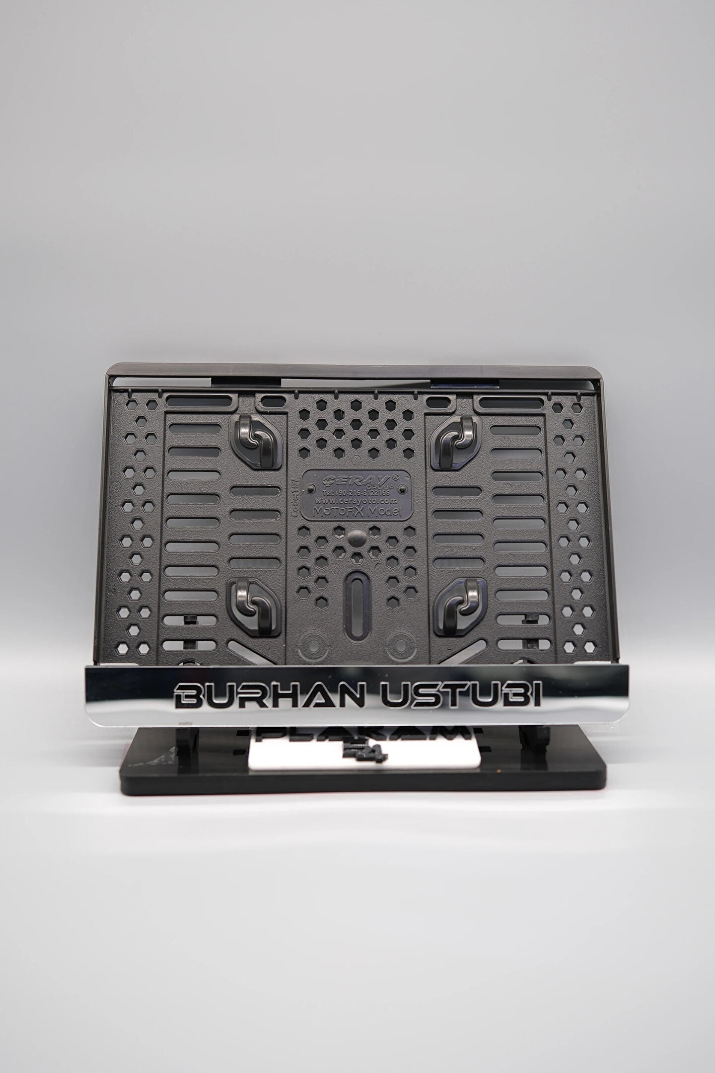 Sıradanı Sıradışıya Çevir! Lazer Kesim Plakalıklarımızla Tanışın!; Özellikler:; Alt çıta ve plakalık olmak üzere toplam 2 parçadan oluşur.; 3D kabartmalı veya Gümüş tasarımı ile dikkat çeker.; UV baskı değil, silinme veya dökülme yapmaz.; Standart araba plakası ölçülerindedir (24x15 cm plakalar için uygundur).; Kalite ve Şıklığı Bir Arada Sunuyoruz:; Ürünlerimiz, parlak 1. sınıf kalitede pleksiyi lazer kesim kullanılarak özel yapıştırıcılarla birleştirilerek üretilir.; Sadece plaka değil, aracınıza özgü bir tarz katmanın en havalı yolu!; Dayanıklılıkta Sınır Tanımıyoruz:; Uzun süreli kullanıma uygun olan plakalıklarımız, özel yapıştırıcı teknolojisi ile birleşerek aracınızın stilini korur.; Silinme veya dökülme gibi sorunlarla karşılaşmadan uzun ömürlü bir deneyim sunar.; 3D Kabartmalı Tasarım:; Plakalıklarımızın eşsiz 3D kabartma veya Gümüş tasarımı, sizi diğer araçlardan farklı kılacak.; Görsel şölenimiz aracınıza estetik bir dokunuş katıyor.; Kolay Montaj, Büyük Etki:; Aracınıza özel tasarımı hemen kullanmaya başlamak için ürünlerimizin montajı oldukça basittir.; Size zahmetsiz bir kişiselleştirme deneyimi sunuyoruz.; Gerçek Görseller, Gerçek Ürün:; ürün görsellerimizle alacağınız ürün arasında çita malzeme fark yok.; Ürün özellikleri ile ilgili olan sorularınızı ürünün altında yer alan Satıcı Soruları bölümünü tıklayarak sorabilirsiniz.;Siparişiniz ile ilgili sorularınızı veya taleplerinizi Sipariş Detay'da yer alan Soru Sor bölümünden iletebilirsiniz.;Siparişi oluşturduktan sonra Örnek sipariş:"Sipariş numaram: 1111111111, Plakalık Üstüne Yazılacak yazı:ADINIZ SOYADINIZ"şeklinde bizlere sipariş bilgilerinizi iletebilirsiniz.;Sipariş sonrası ürün soru sor kısmına üründeki seçmiş olduğunuz plakalığa yazılacak yazıyı belirtiniz.;Yazınızı belirtmediğiniz taktirde görselde yer alan modele siparişteki isim yazılarak gönderilecektir.; Farklı modeller için diğer ürünlerimizi inceleyebilirsiniz.;Plaka çerçevesine yazmak istediğiniz en fazla 30 karakter giriniz; NOT Büyük Küçük harf Font uyumuna bağlıdır Küçük Harfler ile yazlı olan bilgileriniz font uyumlu ise küçük harflerde kullanılır.;Güvenle satın alın ve aracınızı şık ve özgün kılın.; Aracınızı Kişiselleştirin, Stilinizi Yansıtın!;