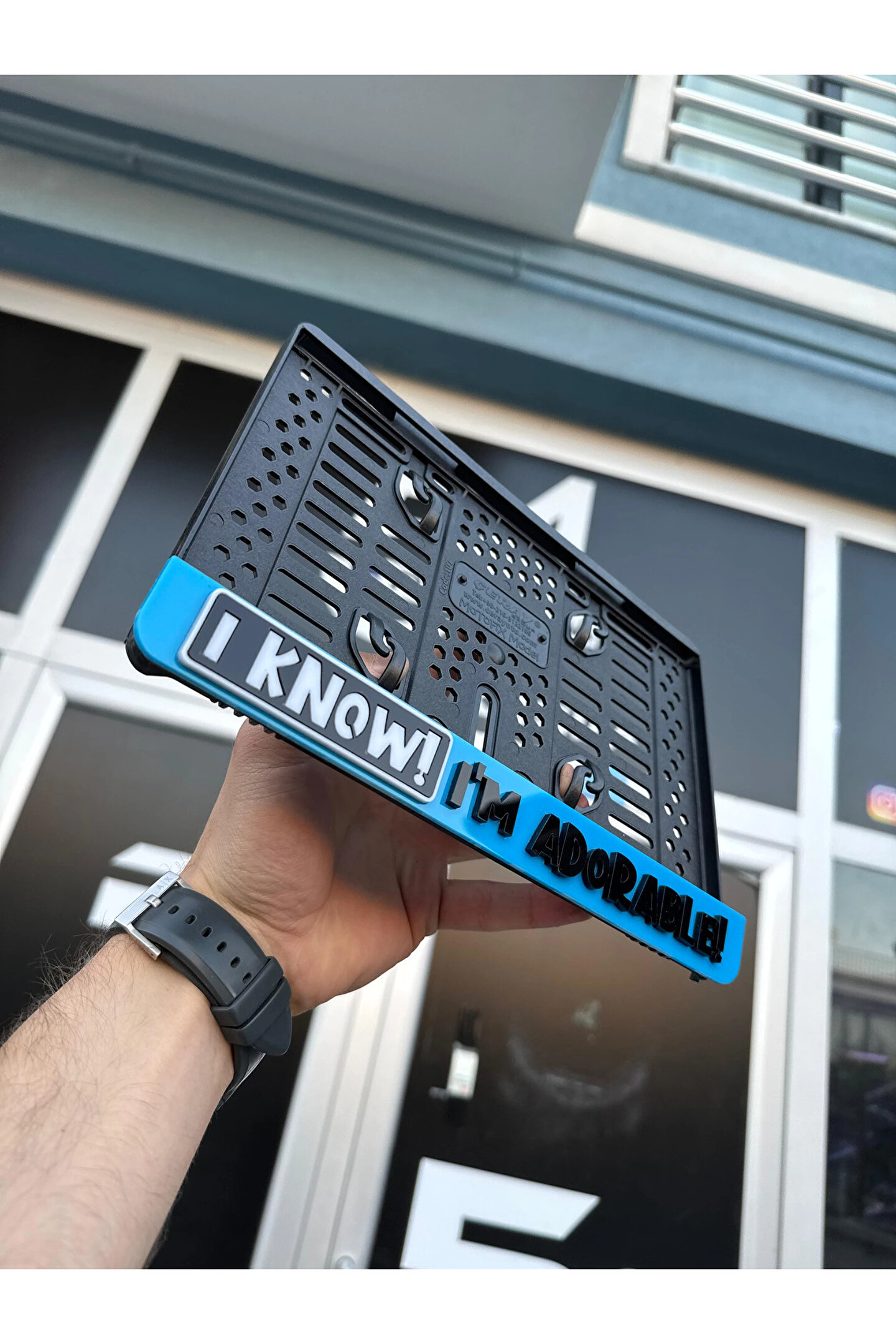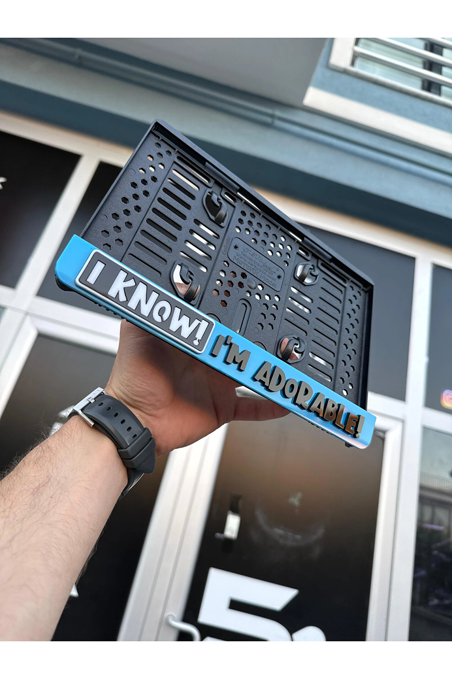Plakam54 I KNOW! IM ADORABLE 3D KABARTMALI MAVİ PLEKSİ MOTOR PLAKALIĞI