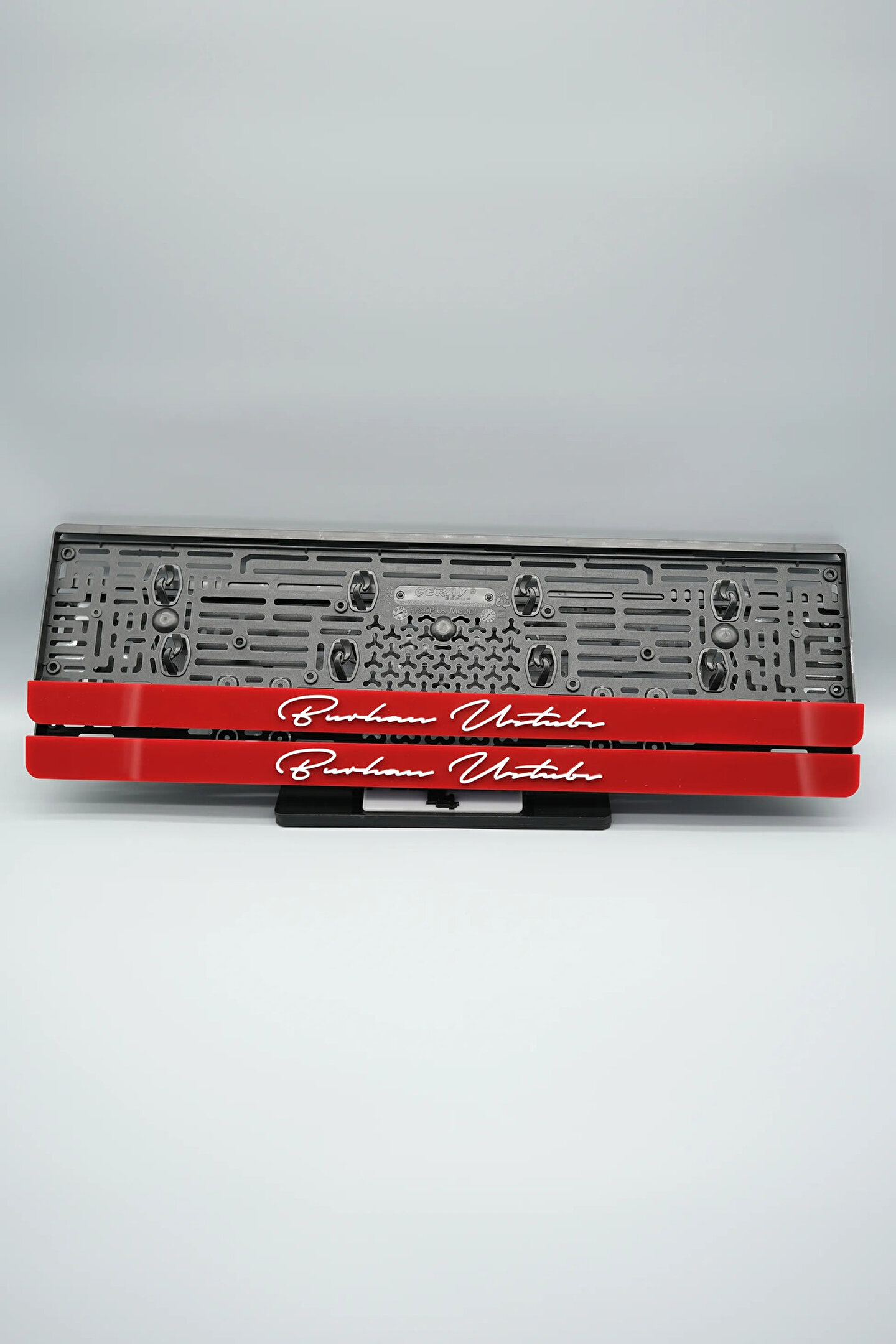 Sıradanı Sıradışıya Çevir! Lazer Kesim Plakalıklarımızla Tanışın!; Özellikler:; Alt çıta ve plakalık olmak üzere toplam 4 parçadan oluşur.; 3D kabartmalı veya gümüş tasarımı ile dikkat çeker.; UV baskı değil, silinme veya dökülme yapmaz.; Standart araba plakası ölçülerindedir (11x52 cm plakalar için uygundur).; Kalite ve Şıklığı Bir Arada Sunuyoruz:; Ürünlerimiz, parlak 1. sınıf kalitede pleksiyi lazer kesim kullanılarak özel yapıştırıcılarla birleştirilerek üretilir.; Sadece plaka değil, aracınıza özgü bir tarz katmanın en havalı yolu!; Dayanıklılıkta Sınır Tanımıyoruz:; Uzun süreli kullanıma uygun olan plakalıklarımız, özel yapıştırıcı teknolojisi ile birleşerek aracınızın stilini korur.; Silinme veya dökülme gibi sorunlarla karşılaşmadan uzun ömürlü bir deneyim sunar.; 3D Kabartmalı Tasarım:; Plakalıklarımızın eşsiz 3D kabartma tasarımı, sizi diğer araçlardan farklı kılacak.; Görsel şölenimiz aracınıza estetik bir dokunuş katıyor.; Kolay Montaj, Büyük Etki:; Aracınıza özel tasarımı hemen kullanmaya başlamak için ürünlerimizin montajı oldukça basittir.; Size zahmetsiz bir kişiselleştirme deneyimi sunuyoruz.;Gerçek Görseller, Gerçek Ürün:; ürün görsellerimizle alacağınız ürün arasında çita malzeme fark yok.; Ürün özellikleri ile ilgili olan sorularınızı ürünün altında yer alan Satıcı Soruları bölümünü tıklayarak sorabilirsiniz.;Siparişiniz ile ilgili sorularınızı veya taleplerinizi Sipariş Detay'da yer alan Soru Sor bölümünden iletebilirsiniz.;Siparişi oluşturduktan sonra Örnek sipariş:"Sipariş numaram: 1111111111, Plakalık Üstüne Yazılacak yazı: ADINIZ SOYADINIZ Üstübi"şeklinde bizlere sipariş bilgilerinizi iletebilirsiniz.;Sipariş sonrası ürün soru sor kısmına üründeki seçmiş olduğunuz plakalığa yazılacak yazıyı belirtiniz.;Yazınızı belirtmediğiniz taktirde görselde yer alan modele siparişteki isim yazılarak gönderilecektir.; Farklı modeller için diğer ürünlerimizi inceleyebilirsiniz.;Ürünlerimiz takım olup 2 adet gönderilecektir.;Plaka çerçevesine yazmak istediğiniz en fazla 30 karakter giriniz; NOT Büyük Küçük harf Font uyumuna bağlıdır Küçük Harfler ile yazlı olan bilgileriniz font uyumlu ise küçük harflerde kullanılır.;Güvenle satın alın ve aracınızı şık ve özgün kılın.; Aracınızı Kişiselleştirin, Stilinizi Yansıtın!;