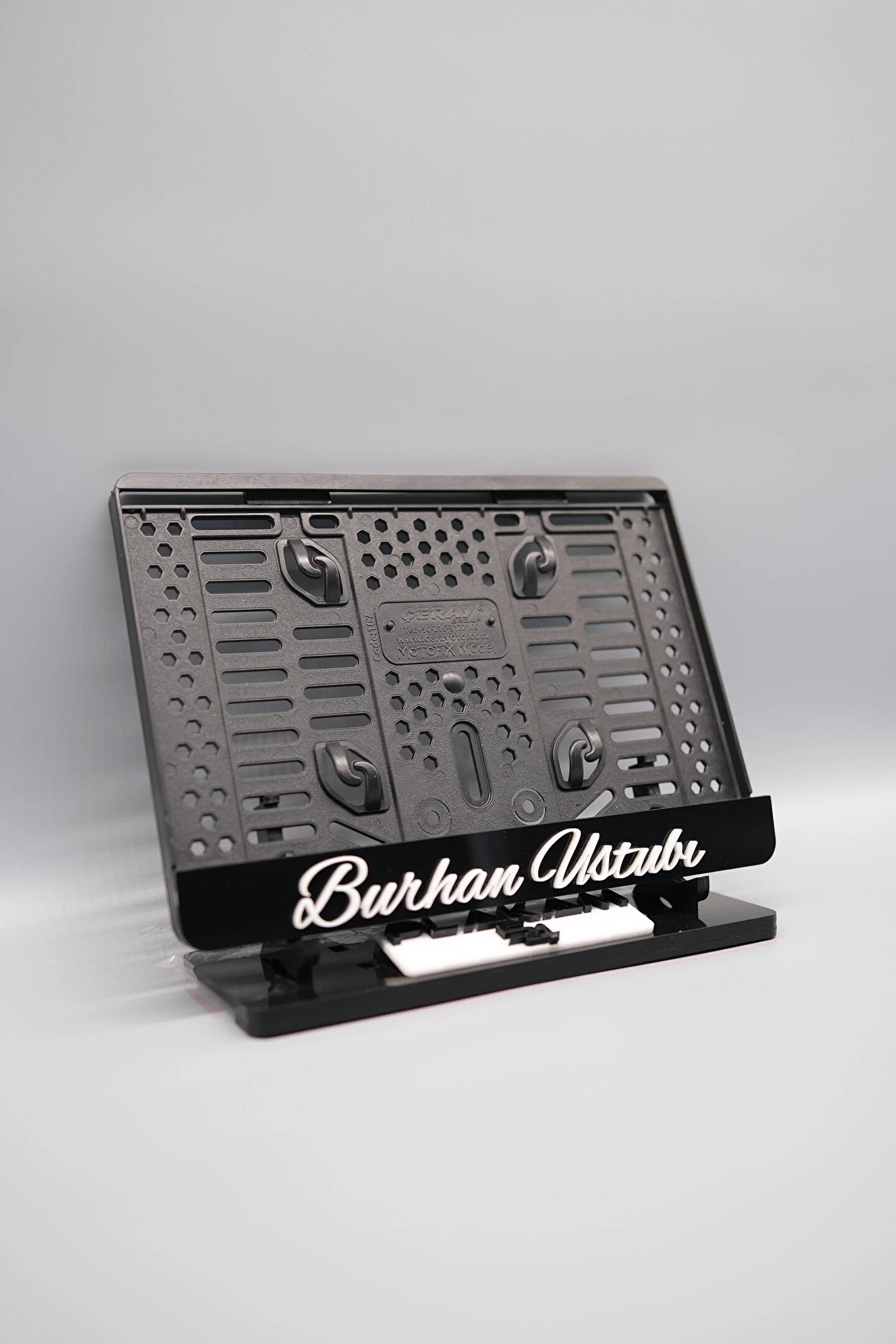 Sıradanı Sıradışıya Çevir! Lazer Kesim Plakalıklarımızla Tanışın!; Özellikler:; Alt çıta ve plakalık olmak üzere toplam 2 parçadan oluşur.; 3D kabartmalı veya Gümüş tasarımı ile dikkat çeker.; UV baskı değil, silinme veya dökülme yapmaz.; Standart araba plakası ölçülerindedir (24x15 cm plakalar için uygundur).; Kalite ve Şıklığı Bir Arada Sunuyoruz:; Ürünlerimiz, parlak 1. sınıf kalitede pleksiyi lazer kesim kullanılarak özel yapıştırıcılarla birleştirilerek üretilir.; Sadece plaka değil, aracınıza özgü bir tarz katmanın en havalı yolu!; Dayanıklılıkta Sınır Tanımıyoruz:; Uzun süreli kullanıma uygun olan plakalıklarımız, özel yapıştırıcı teknolojisi ile birleşerek aracınızın stilini korur.; Silinme veya dökülme gibi sorunlarla karşılaşmadan uzun ömürlü bir deneyim sunar.; 3D Kabartmalı Tasarım:; Plakalıklarımızın eşsiz 3D kabartma veya Gümüş tasarımı, sizi diğer araçlardan farklı kılacak.; Görsel şölenimiz aracınıza estetik bir dokunuş katıyor.; Kolay Montaj, Büyük Etki:; Aracınıza özel tasarımı hemen kullanmaya başlamak için ürünlerimizin montajı oldukça basittir.; Size zahmetsiz bir kişiselleştirme deneyimi sunuyoruz.; Gerçek Görseller, Gerçek Ürün:; ürün görsellerimizle alacağınız ürün arasında çita malzeme fark yok.; Ürün özellikleri ile ilgili olan sorularınızı ürünün altında yer alan Satıcı Soruları bölümünü tıklayarak sorabilirsiniz.;Siparişiniz ile ilgili sorularınızı veya taleplerinizi Sipariş Detay'da yer alan Soru Sor bölümünden iletebilirsiniz.;Siparişi oluşturduktan sonra Örnek sipariş:"Sipariş numaram: 1111111111, Plakalık Üstüne Yazılacak yazı:ADINIZ SOYADINIZ"şeklinde bizlere sipariş bilgilerinizi iletebilirsiniz.;Sipariş sonrası ürün soru sor kısmına üründeki seçmiş olduğunuz plakalığa yazılacak yazıyı belirtiniz.;Yazınızı belirtmediğiniz taktirde görselde yer alan modele siparişteki isim yazılarak gönderilecektir.; Farklı modeller için diğer ürünlerimizi inceleyebilirsiniz.;Plaka çerçevesine yazmak istediğiniz en fazla 30 karakter giriniz; NOT Büyük Küçük harf Font uyumuna bağlıdır Küçük Harfler ile yazlı olan bilgileriniz font uyumlu ise küçük harflerde kullanılır.;Güvenle satın alın ve aracınızı şık ve özgün kılın.; Aracınızı Kişiselleştirin, Stilinizi Yansıtın!;