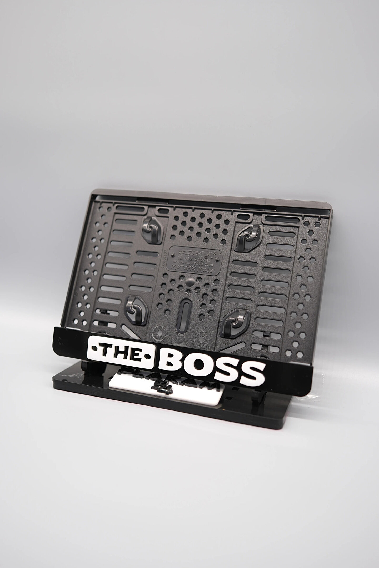 Plakam54 THE BOSS 3D KABARTMALI BEYAZ PLEKSİ MOTOR PLAKALIĞI