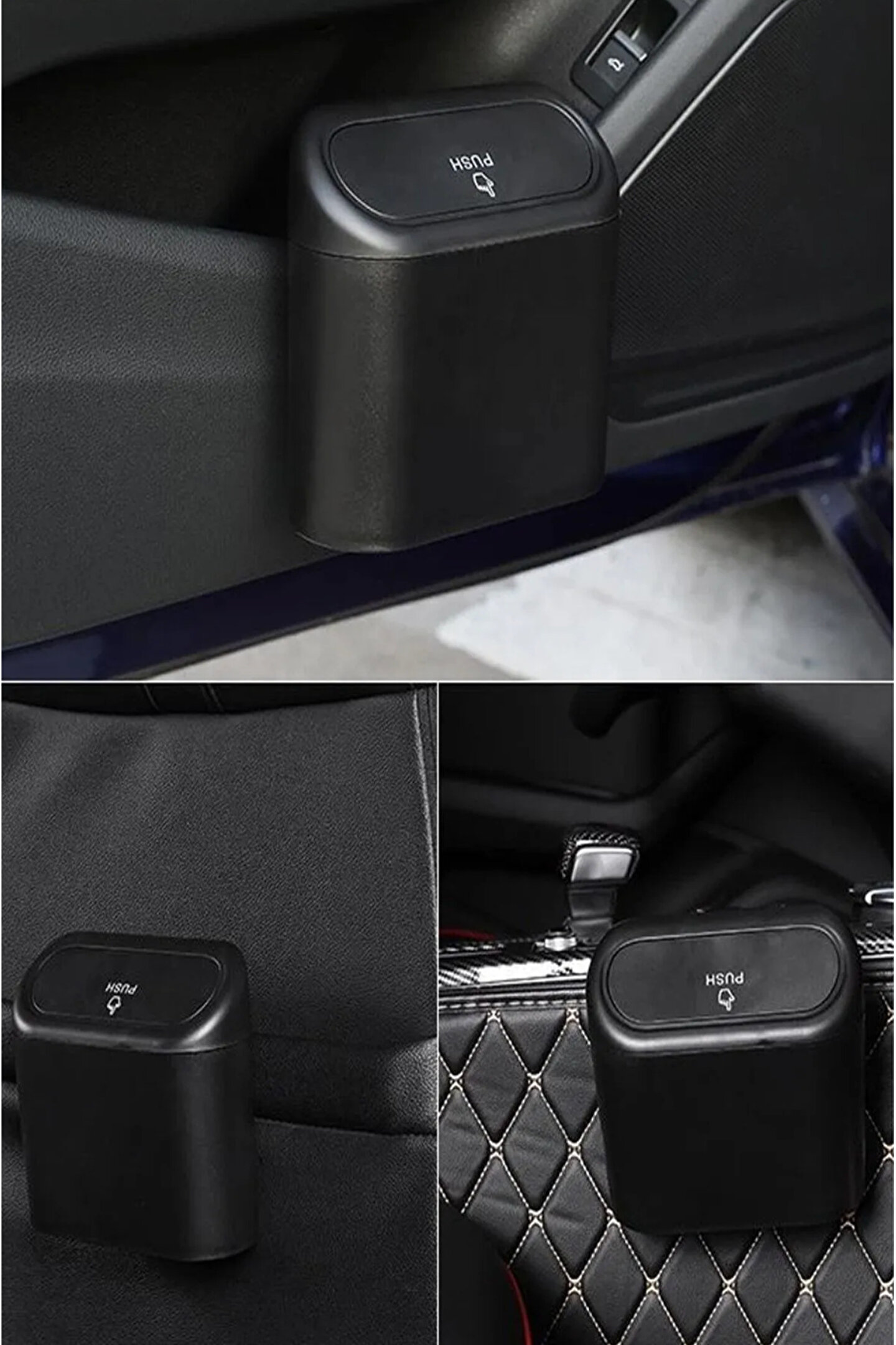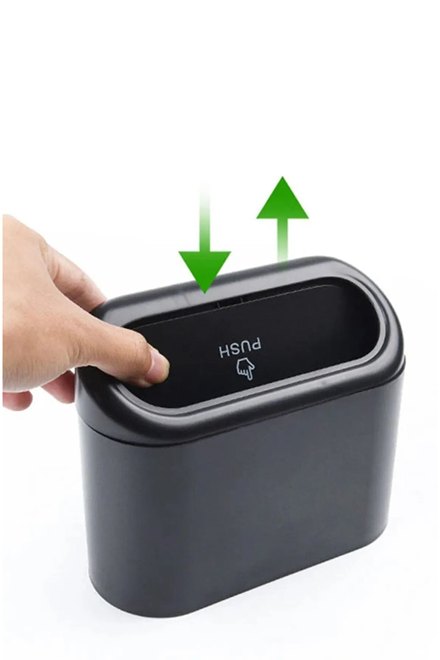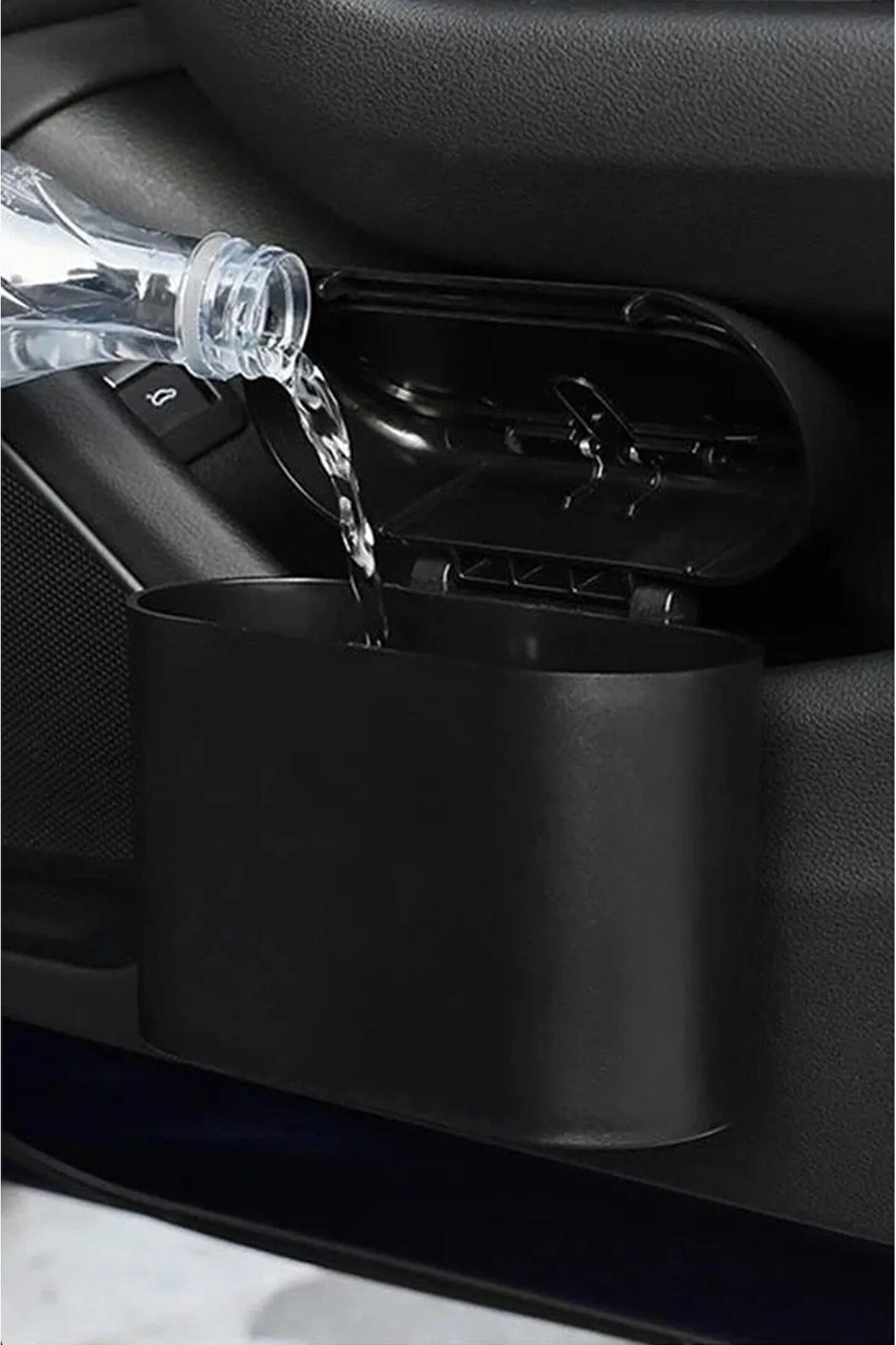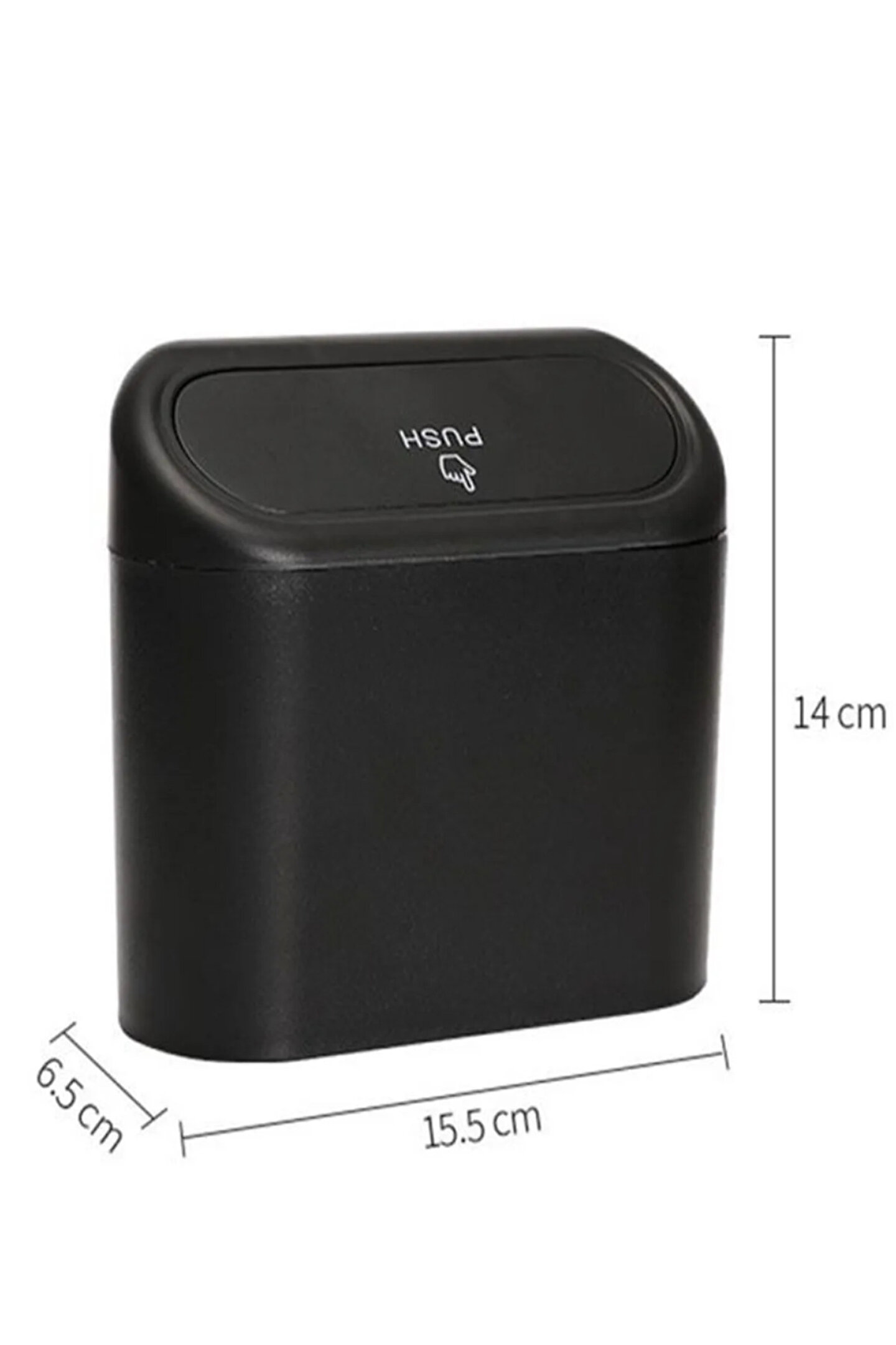 PlusOto Araba Çöp Kutusu Siyah Portatif Araç İçi Taşınabilir Kapaklı Organizer Çöp Kovası