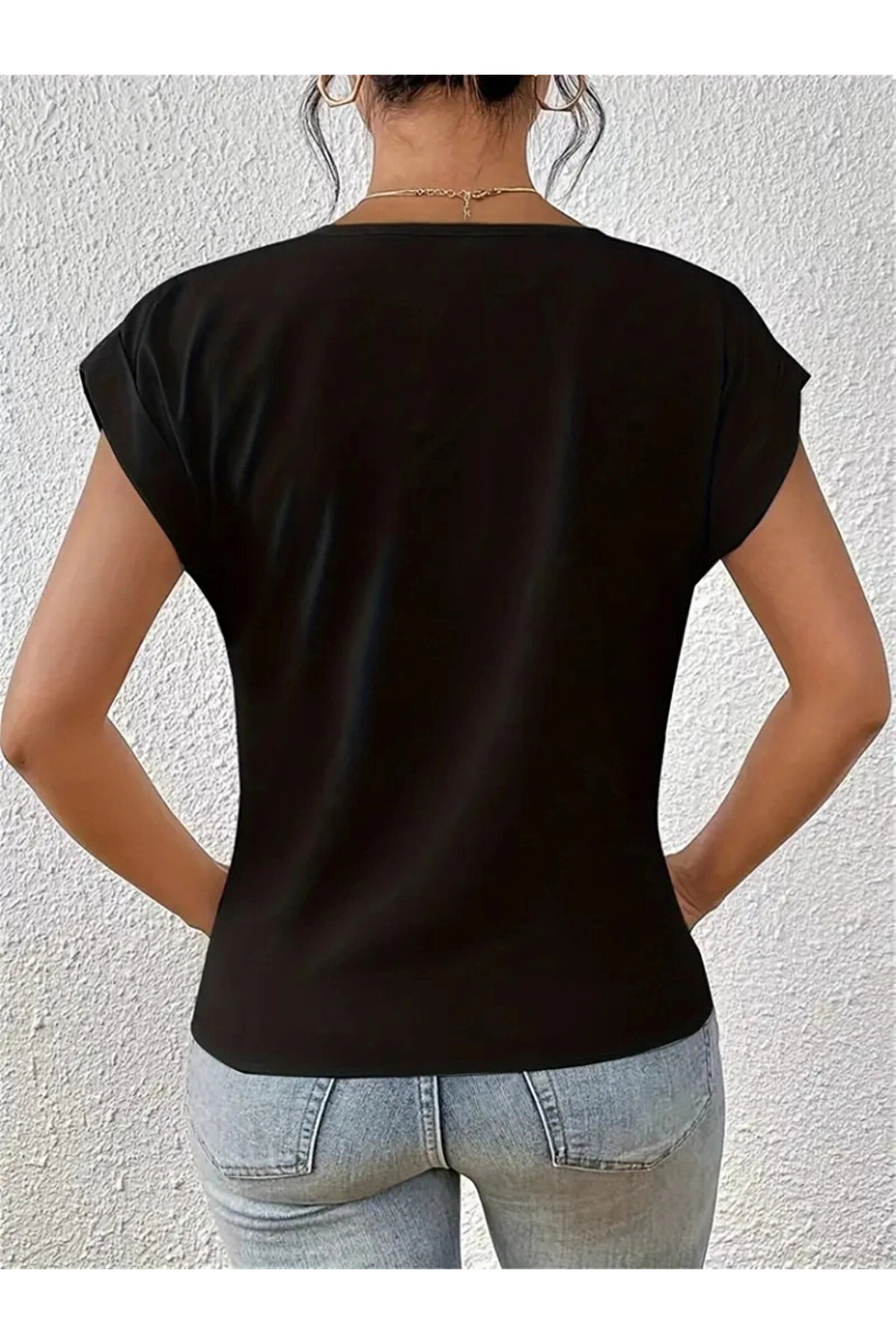 Kadın Kısa Kollu V Yakalı önden çapraz Geçmeli Detay Viskon Bluz