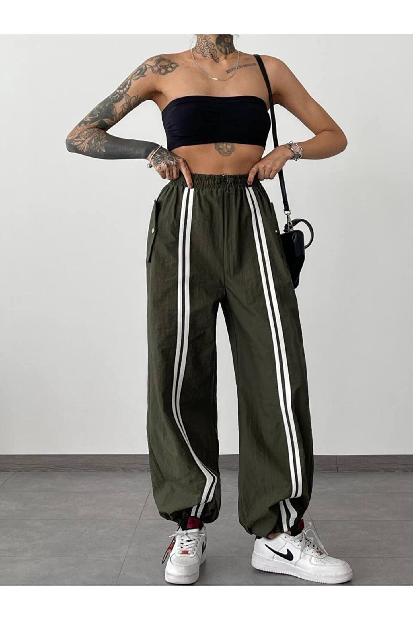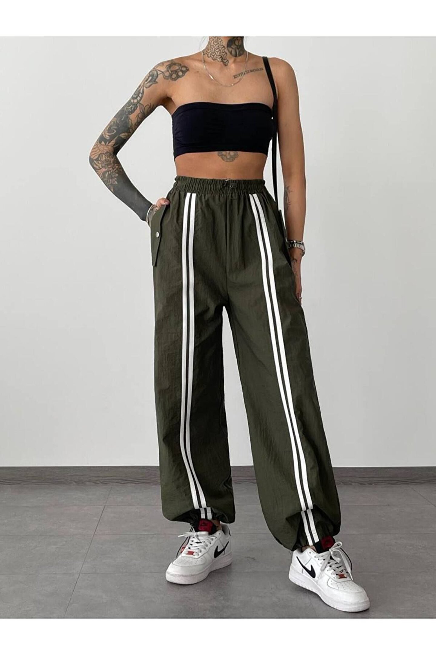 popibutik Cep Detaylı Lastikli Haki Paraşüt Pantolon