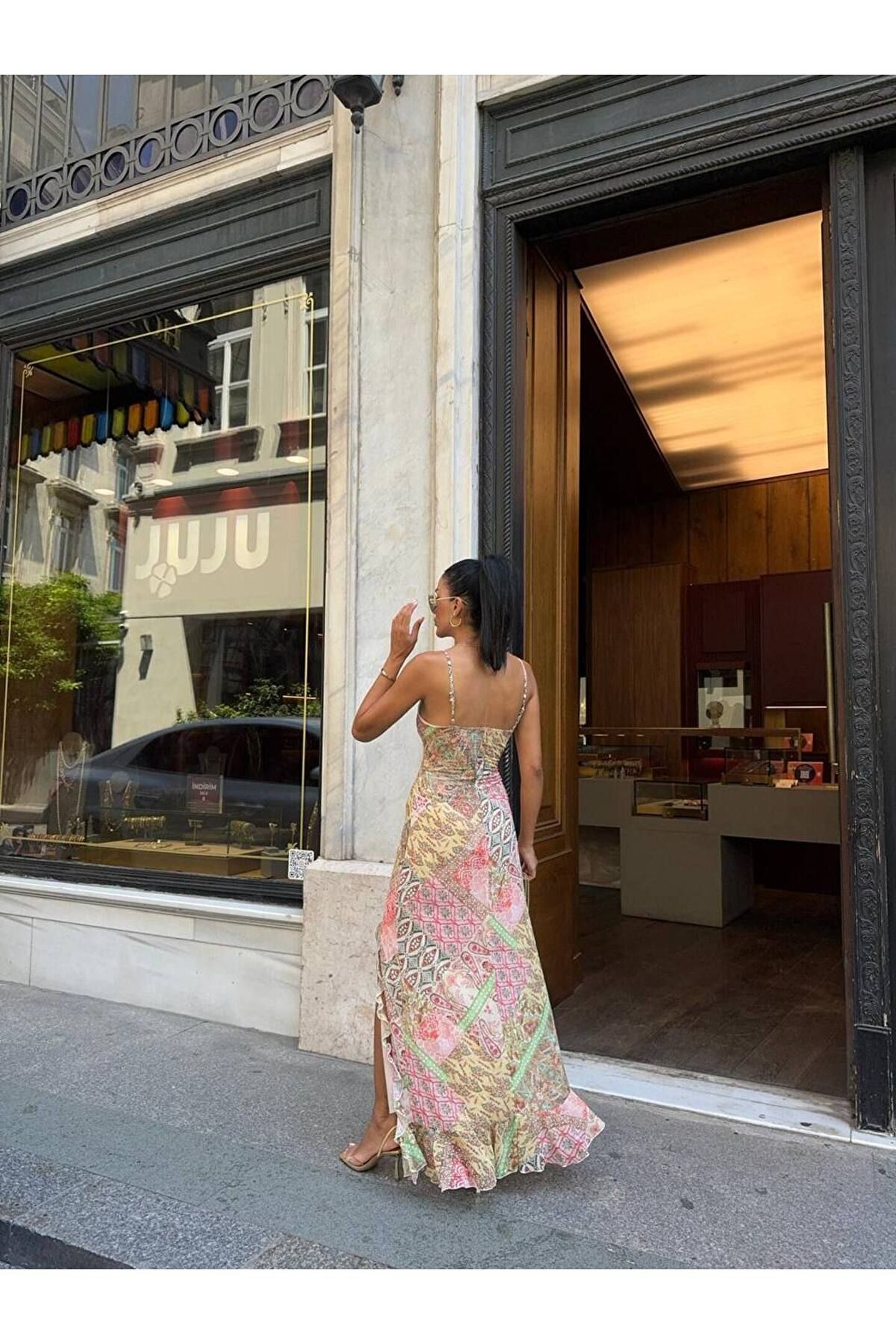 Zarif desenleriyle dikkat çeken bu elbise, gençlerin tarzını yansıtan canlı pembe tonuyla göz alıcı bir görünüm sunar.; İnce askılı tasarımı sayesinde omuzlarınızı zarifçe sergilerken, şifon kumaş yapısı hafifliği ve rahatlığıyla konforlu bir deneyim sağlar.; Maxi boyu ile hem şıklığı hem de konforu bir arada sunan bu elbise, günlük kullanımdan özel etkinliklere kadar geniş bir yelpazede tercih edilebilir.; Bele oturan kalıbı sayesinde vücut hatlarınızı nazikçe sararak feminen siluetinizi ön plana çıkarır.; Kumaş tipinin belirtilmemiş olması, şifonun hafif dokusunu korurken esneklik ve dayanıklılık gibi diğer özelliklerin de mevcut olabileceğini düşündürür.;
