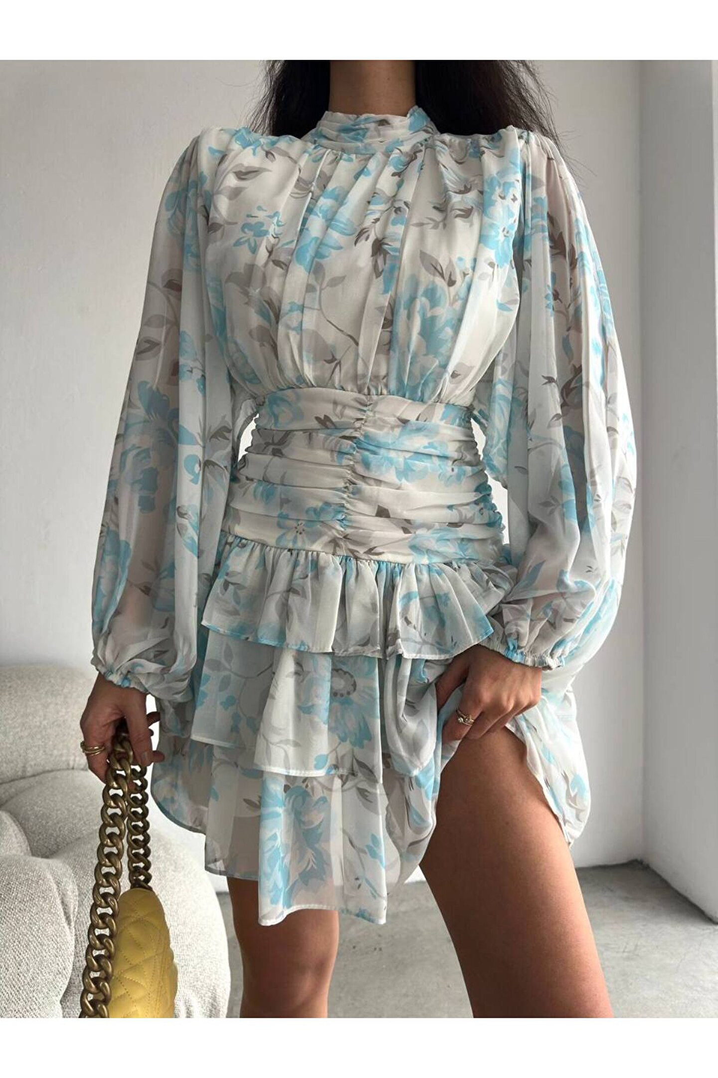 - Zarif dik yakası ve şık desenleriyle dikkat çeken bu mini şifon elbise, özel günlerinizde göz alıcı bir görünüm sunar; - Polyester materyal kullanımı sayesinde uzun ömürlü ve dayanıklı bir yapıya sahip olup, kolay bakım imkanı sağlar; - Design koleksiyonuna ait bu elbise, modern ve trend tasarımlarıyla her gardıropta yerini almayı hak eder; - Uzun kollu ve slim kalıbı ile vücut hatlarınıza mükemmel uyum sağlayarak feminen bir siluet oluşturur; - Şifon dokuma tipi, hafif ve nefes alabilen yapısıyla konforlu bir kullanım sunarken, baskılı deseniyle stilinizi öne çıkarır; - Astarlı yapısı sayesinde rahatlıkla tercih edebileceğiniz bu elbise, tüm yaş gruplarına hitap eden geniş bir kullanıcı kitlesine sahiptir; - Şık ve gece ortamları için ideal olan bu elbise, dantel detaylarıyla zarafeti ve sofistike bir dokunuşu beraberinde getirir;