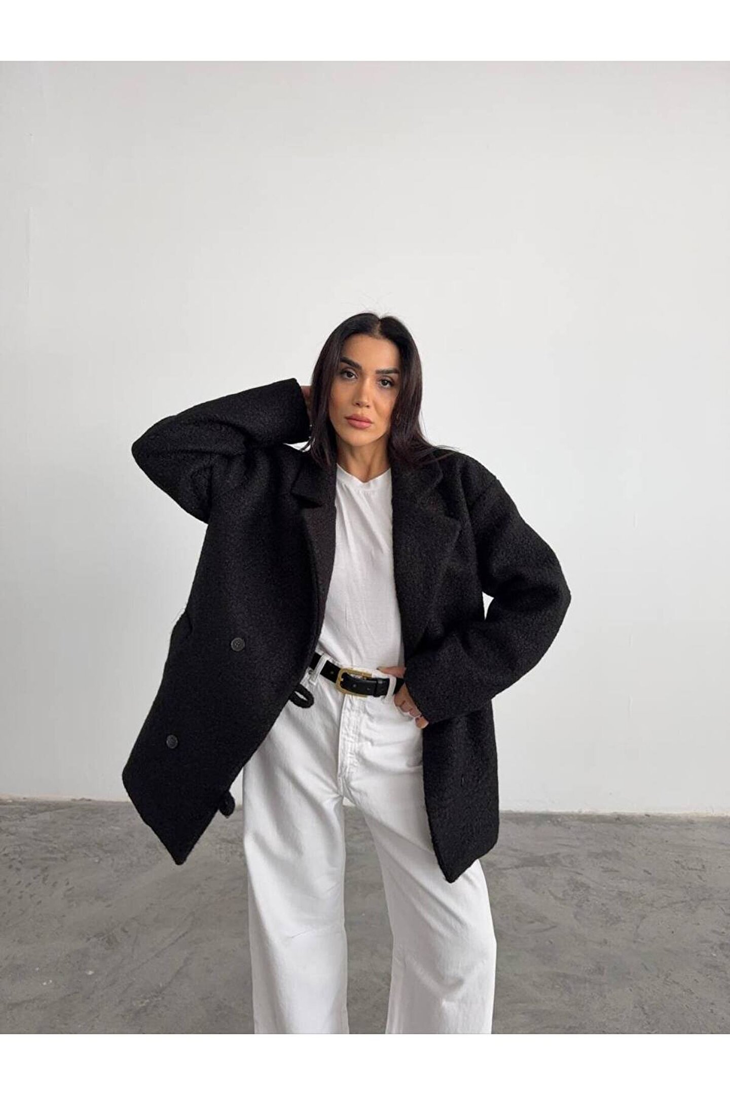 popibutik Kadın Buklet Kumaş Kısa Kaban
