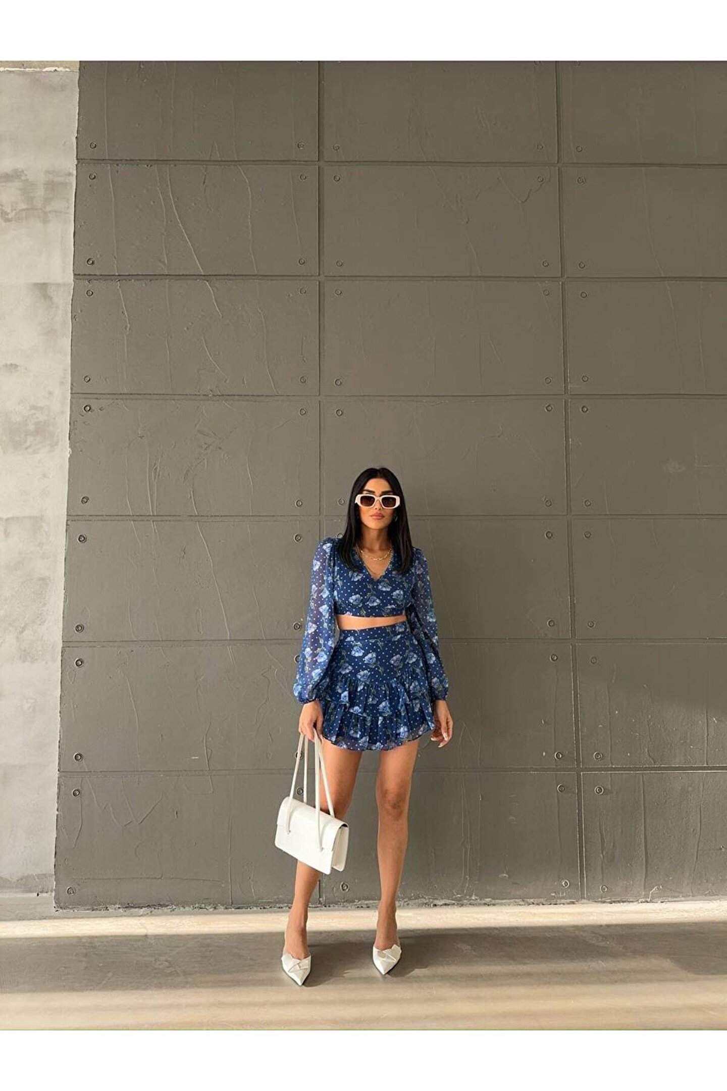 Gençlerin enerjisini yansıtan, slim kesim tasarımıyla modern ve şık bir görünüm sunar.; Çiçekli deseniyle feminen dokunuşları ön plana çıkaran bu takım, göz alıcı detaylarıyla dikkat çeker.; Örme şifon kumaşı sayesinde hafif ve nefes alabilen yapısıyla yaz ayları için idealdir.; Crop üstü ile trendleri takip eden gençler için mükemmel bir seçimdir; hem rahat hem de stil sahibi olmanızı sağlar.; Tüm yaş gruplarına hitap eden geniş beden skalasıyla herkes için uygunluk sunar.; Mavi rengiyle kolayca kombinlenebilir ve farklı aksesuarlarla zenginleştirilebilir.;