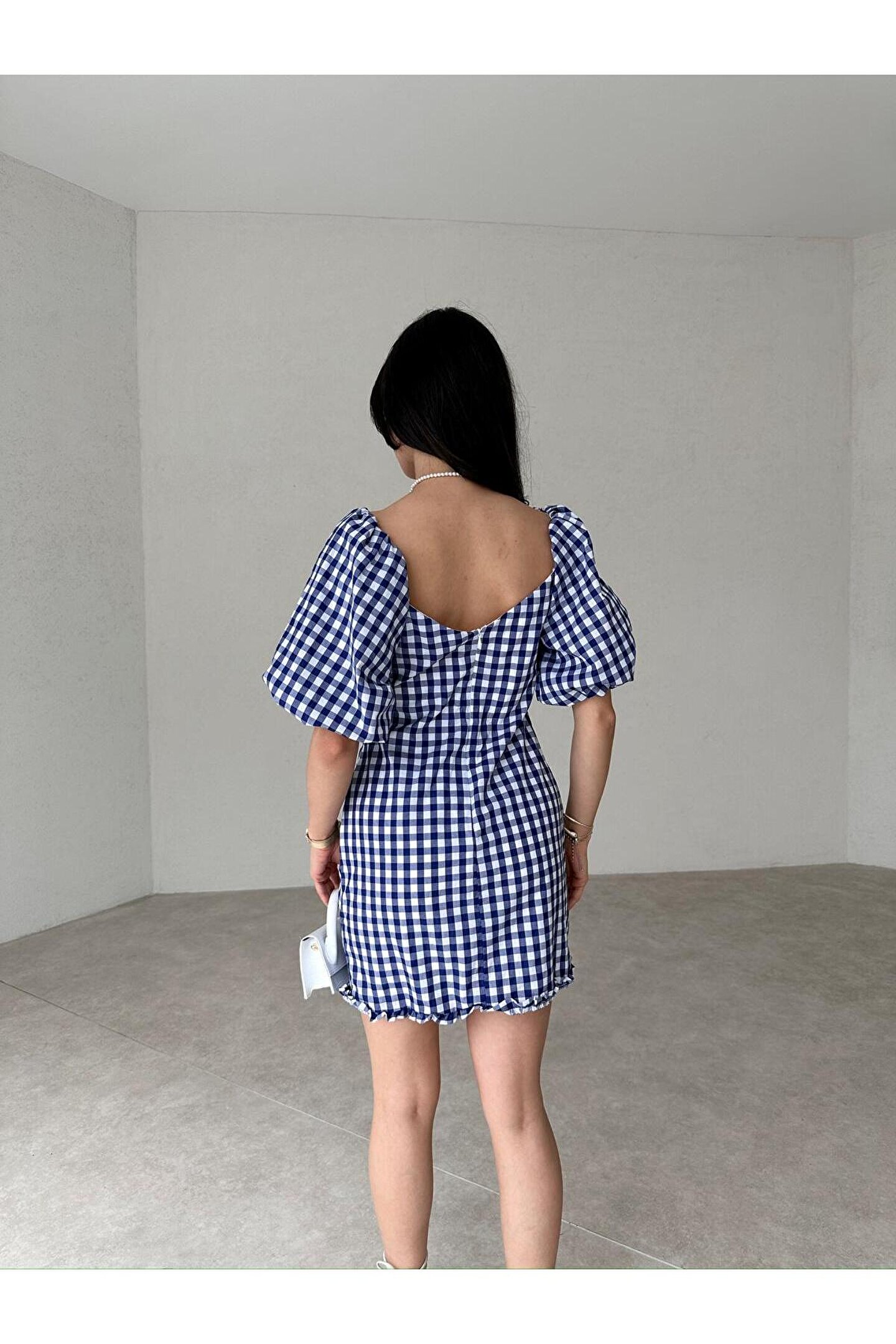 Elbise omuzdan aşağı 80 cm uzunluğundadır.; ; Elbise kumaşı esnek değildir.; ; Elbise iç göstermez.; ; Sıklıkla kullandığınız bedeni tercih edebilirsiniz.; ; Görseldeki model 170 cm 55 kg üzerindeki ürün S bedendir.; ; Modelin kendi bedeni de S bedendir.; ;