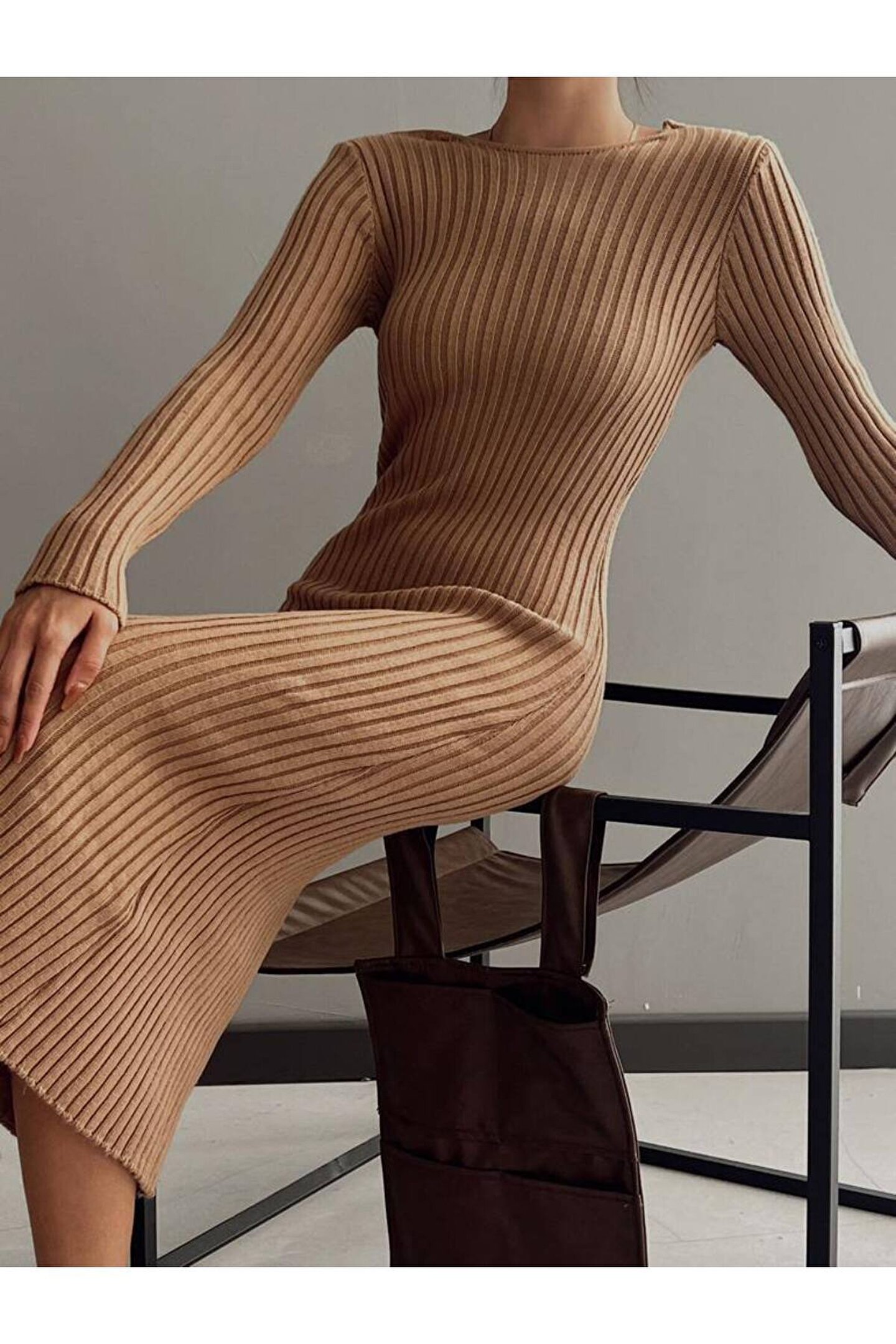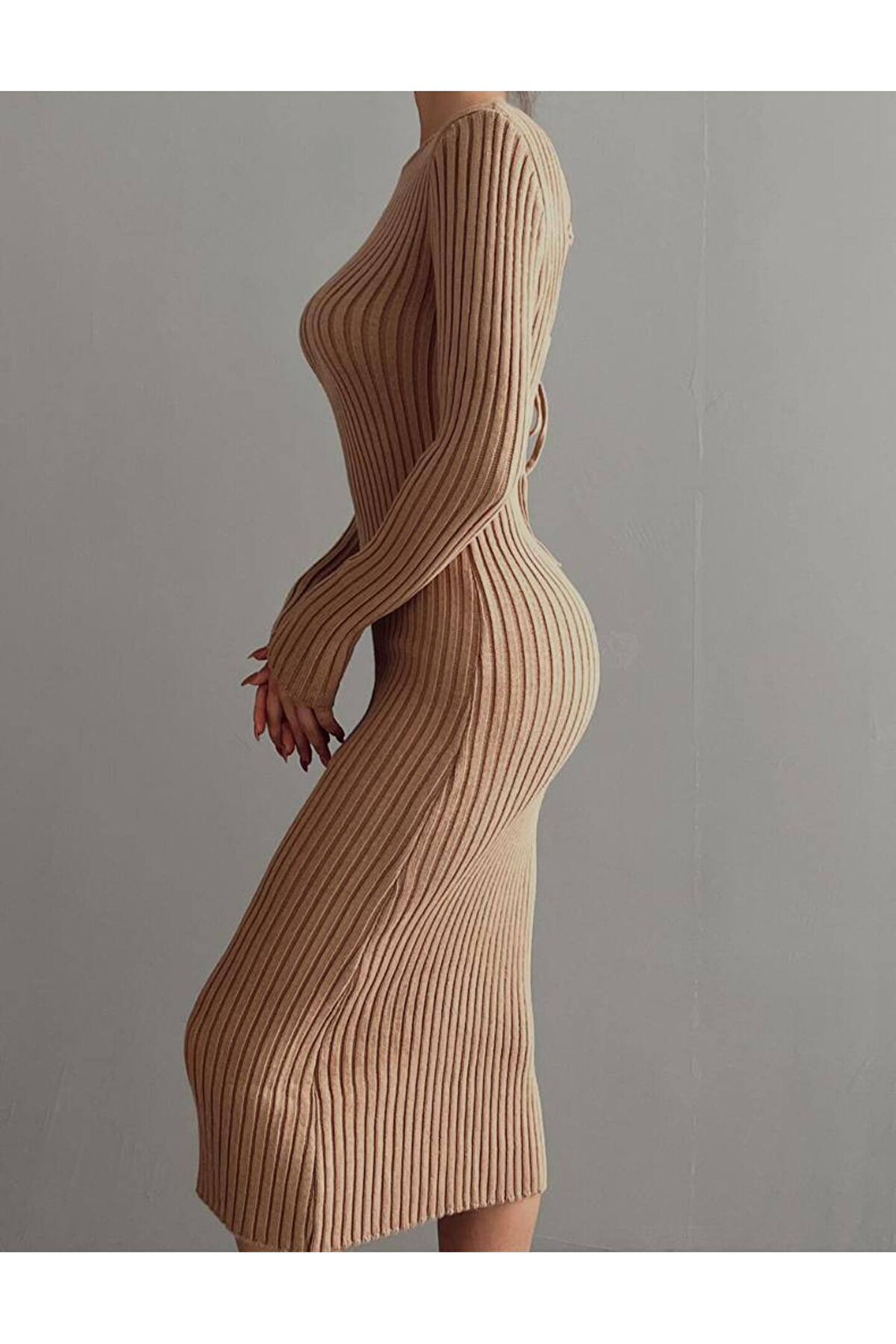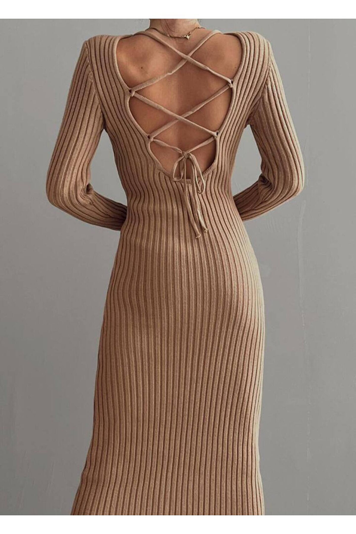 Rahat kesimiyle her vücut tipine uyum sağlayan regular kalıp, günlük kullanımda konforlu bir deneyim sunar.; Her yaştan kadının gardırobunda yerini alabilecek düz tasarımlı bu elbise, zamansız şıklığı yakalıyor.; Yumuşak dokusuyla öne çıkan triko kumaşı, gün boyu rahatlıkla hareket etme imkanı tanırken aynı zamanda sıcak tutar.; Sırt detayına eklenen ip detaylarıyla modern ve trend bir görünüm kazanan bu elbise, gençlerin tarzını yansıtacak şekilde tasarlanmıştır.; Standart boy uzunluğuyla her türden ayakkabıyla kolayca kombinlenebilir; böylece farklı stil tercihlerine uyum sağlar.;