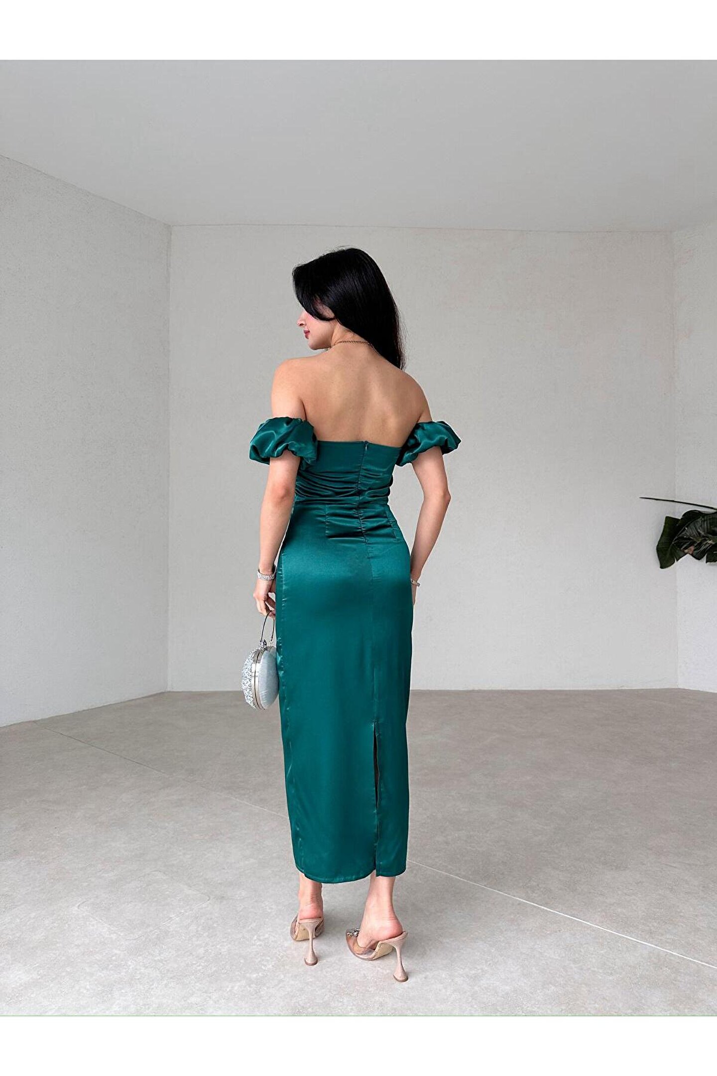 Midi Elbise tam kalıplıdır. ; Elbise göğüsten aşağı 114 cm uzunluğundadır. ; Elbise yırtmaç derinliği 33 cm uzunluğundadır. ; Elbise kumaşı esnek değildir. ; Elbise iç göstermez. ; Elbise saten kumaştır.. ; Sıklıkla kullandığınız bedeni tercih edebilirsiniz. ; Görseldeki model 170 cm 55 kg üzerindeki ürün S bedendir. ; Modelin kendi bedeni de S bedendir. ;