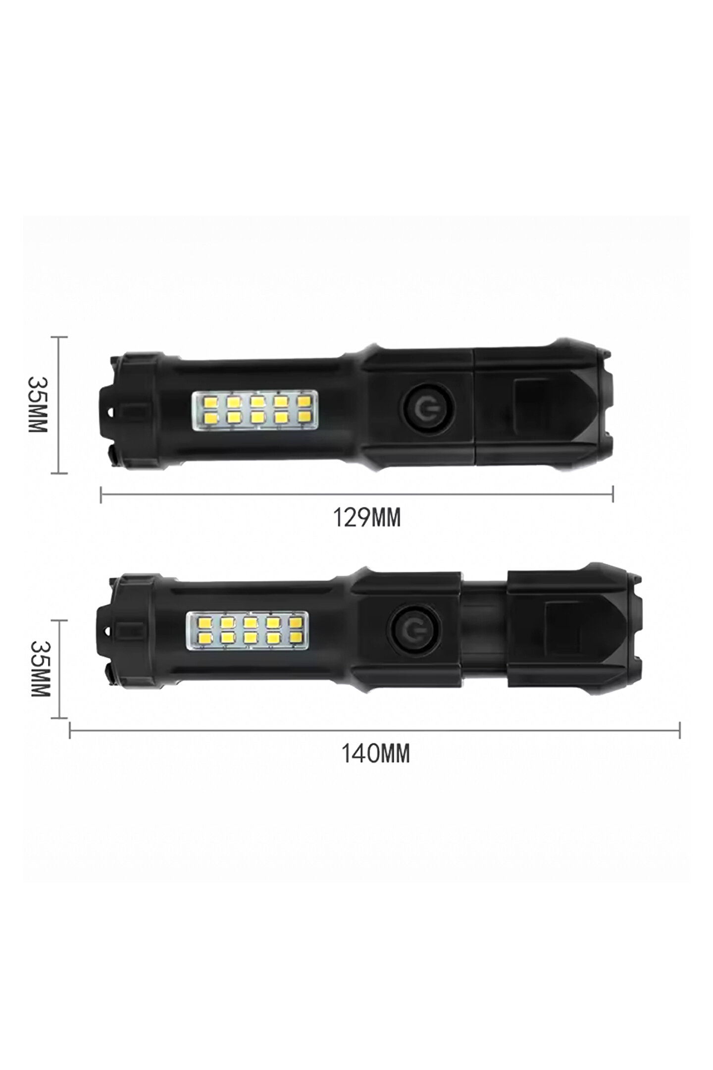 PowerMaster Acil Durum El Feneri ÖzellikleriPowerMaster 109-B Zoomlu Flash Özellikli SMD ve Power LED’li Şarjlı Plastik Kasa El Feneri, kullanıcılarına güçlü aydınlatma çözümleri sunan çok işlevli bir cihazdır.; 4 modlu bu el feneri, farklı aydınlatma ihtiyaçlarına cevap verecek şekilde tasarlanmıştır.; 10 SMD LED ile donatılmış olan bu fener, yüksek parlaklık sağlar ve enerji tasarrufu yapar.; Yanıp sönme modu ise acil durumlarda dikkat çekmek için kullanılabilir.; Zoomlu flash özelliği sayesinde odaklanmış ve geniş açılı ışık arasında kolayca geçiş yapabilirsiniz.; Micro USB ile şarj edilebilen PowerMaster 109-B, pratik ve kullanışlı bir çözüm sunar.; USB çıkışı sayesinde bu el feneri aynı zamanda bir powerbank olarak da kullanılabilir, böylece mobil cihazlarınızı şarj etme imkanı sağlar.; Bu özellik, özellikle kamp, doğa yürüyüşü veya acil durumlar için mükemmel bir tercih yapar.; Teknik Detaylar:Marka Model: PowerMaster F18Aydınlatma Modları: 4 ModluLED Tipi: 10 SMD LED, 1 Power LEDYanıp Sönme Modu: Flash MevcutŞarj Tipi: Micro USB ile şarj edilebilirPowerbank Özelliği: USB Çıkışı ile kullanılabilirToz Geçirmez: EvetBoyutlar: 130x35mmZoom Tipi: Manuel İleri GeriMalzeme: ABS PlastikNeden Tercih Etmelisiniz?:Çok İşlevli Kullanım: Hem el feneri hem de powerbank olarak kullanılabilir.; Yüksek Parlaklık: 10 SMD LED ile güçlü aydınlatma sağlar.; Acil Durum Kullanımı: Yanıp sönme modu ile acil durumlarda dikkat çekebilir.; Pratik Şarj: Micro USB ile kolayca şarj edilebilir.; Dayanıklı ve Taşınabilir: Plastik kasa ve kompakt boyutları ile toz geçirmez ve taşınması kolaydır.