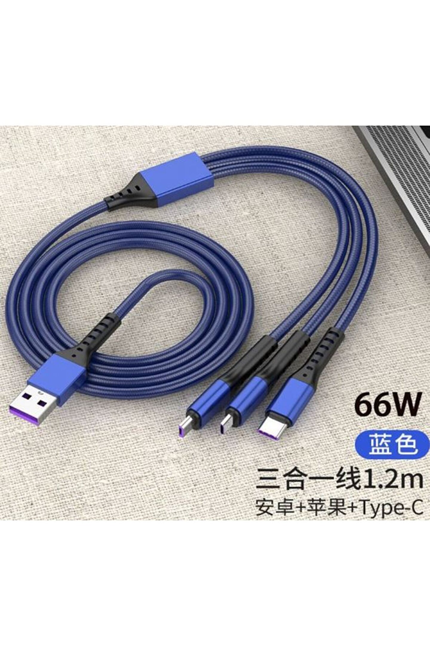 Powermaster PM-26334 3 IN 1 Mavi 1.2 Metre Şarj Kablosu