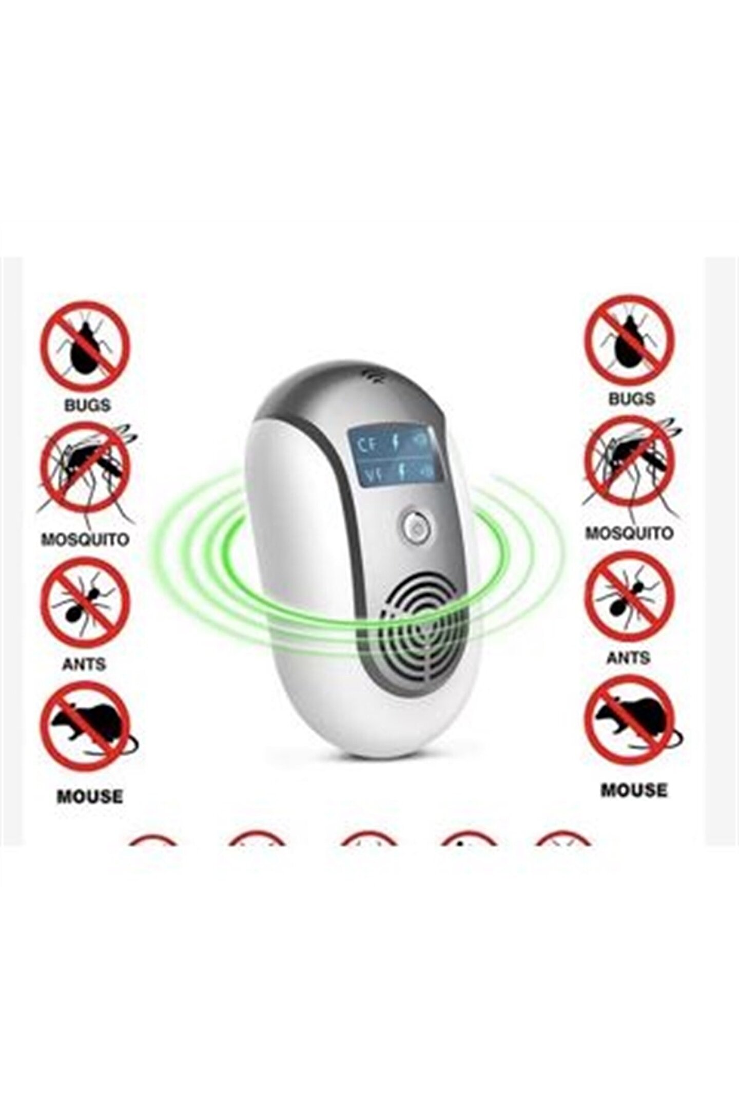 Powermaster Ultrasonik Haşere Kovucu PM-7591 Özellikleri Tanım : Ultrasonik Haşere Kovucu ; Lcd Ekran ; Kimyasal İlaç olmadan, tablet olmadan ultrasoniK ses dalgaları ile yeni teknoloji haşere kovucu ; Voltaj : 110~240V ; Kapsama Alanı : ~ 160m² ; Frekans Tepkisi : 20KHz - 150KHz ; Anma Gücü : ?5W ; 18 çeşit otomatik frekans ; Ses Dalgası Türü : Ultrasonik Dalga, Elektromanyetik Dalga, Dalga, Ara Dalga ; Malzeme : ABS Plastik ; Tip : Standart Priz Tip ; Cihazın kesinlikle insan sağlığı için herhangi bir yan etkisi bulunmamaktadır. ; Boyut : 13*8*4 Cm ; Ağırlık : 160 Gr. ; CE, FCC, RoHs Belgeli ; Kolay kurulum ve kullanım ; Model : PM-7591 ; Ürün Hakkında İlk süreçte haşereleri kovmak için sürekli fişte takılı olmalıdır. Lütfen ürünü 2 ~ 4 hafta boyunca sabırla kullanın. ; Ürünü yerden 0.3 ~ 1.5 metre yükseklikte kurun, kullanımın başında kapatmayın. ; CF'de 7 ~ 10 gün boyunca kullanın, ardından VF'ye ve kovmak için optik kovma işlevine ayarlayın. ; Kutu İçeriği Powermaster Ultrasonik Haşere Kovucu PM-7591 ; Kullanma Kılavuzu (İngilizce) ;