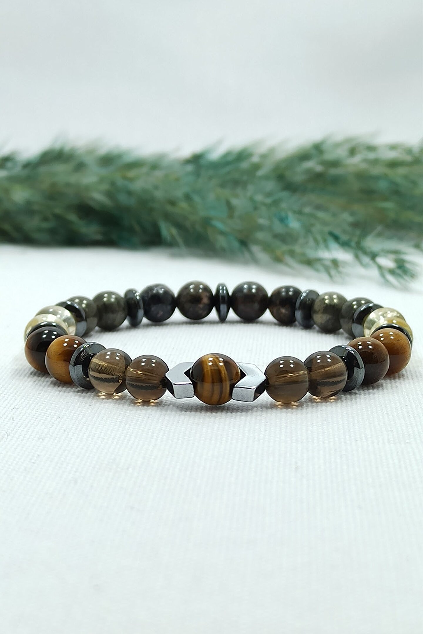 Dumanlı kuvars pirit karma doğal taş erkek bileklik kaplan gözü taşı astım hastaları için faydası olduğuna inanılan bir taştır. ; Kişinin karar vermesine yardımcı olur. ; Kişinin algı gücünü arttırır. ; Hafızayı kuvvetlendirir. ; Inatçılığı azaltır ve duygusal bakımdan dengeleyici bir taştır. ; Sahiplenme duygusunu güçlendirir. ; Para kazanmak için gerekli el becerilerini arttırır. ; Hayatlarında değişiklik yapmayı düşünenlerin tercih etmesi gereken taş kaplan gözü taşıdır. ; Beynin sağ ve sol loblarının dengeli çalışmasını sağlar. ; Kanı toksinlerden temizlediği bilinmektedir. ; Sindirim sistemini düzenleyici bir etkisi vardır. ; Kemik kırıklarının kaynamasına yardım eder dumanlı kuvras: Iyileştirici taşlar arasında yer alır. ; Sinir sistemini güçlendirir. ; Kişiye sakinlik verir. ; Kolay iletişim kurmanıza yardımcı olur. ; Odaklanmaya yardımcı olur. ; Tiroid bezini korur ve iyileştirici özelliği vardır. ; Radyasyona karşı koruyucudur. ; Sinirsel gerginliğe ve panik atak hastalığına iyi gelir. ; Sitrin taşı: Zihni berraklaştırır. ; Üzerinde taşıyan kişiye mutluluk ve neşe duyguları verir. ; Sitrin taşı bolluk ve bereketi kendisine çeker. ; Başarı getirdiğine inanılır. ; Sanatçılar tarafından tercih edilen bir taştır,yaratıcılığı artırdığına inanılır. ; Kişinin kendisini ifade etmesini kolaylaştırır. ; Bağışıklık sistemini güçlendirir. ; Anti oksidan etkilidir. ; Böbrek, kolon sindirim organları, ciğerler ve kalp için faydalı bir taştır. ; Bilekliklerimiz ortalama 17-18 cm ebatındadır pirit taşı: Kişiye canlılık ve yaşama sevinci verir. ; Kişideki idare gücünü arttırıcı etkilere sahiptir. ; Bu özelliğinden dolayı genellikle yönetici konumundaki kişiler tarafından tercih edilir. ; Negatif enerjiye karşı mükemmel bir kalkandır. ; Yetersizlik duygusunu yenmeye yardım eder. ; Kronik yorgunluk gidermeye yardımcıdır. ; Kişinin uyumlu ve sosyal olmasına yardımcı olur. ; Dikkat dağınıklığına iyi gelir. ; Zihni belirsiz düşüncelerden arındırır. ; Hafızaya iyi gelir. ; Öğrenmeyi kolaylaştırır, özgüveni arttırır rodonit taşı: Ruhsal enerjiye sahiptir. ; Uyum ve huzur verir. ; Sorunlarla başa çıkmanıza yardımcı olur. ; Günlük yaşamda başarılı olmaya yardımcı olur. ; Ruhsal,zihinsel ve fiziksel canlılığınızı arttırır. ; Sınav öncesi stresi ortadan kaldırır.Zihin açıklığı verir. ; Öğrenme yeteneğini arttırır. ; Korkuyu azaltmaya yardımcı olur. ; Neşe,keyif,memnuniyet,aşk ve sevgi sembolüdür,kullananın bu özellikleri kazanmasına yardım eder. ; Boğaz ve gırtlak iltihaplarının tedavisine yardım eder. ; Anksiyete ve depresyon tedavisinde destek amaçlı kullanılmaktadır. ; Hematit taşı kişinin kendisine güven duymasına ve kontrol etmesine yardımcıdır. ; Birey ve toplum arasındaki ilişkilerde denge görevi görür. ; Olumsuz enerjiyi gidermeye yardımcıdır. ; Ilişkiler üzerinde olumlu etkisi vardır tüm çakraları dengeler. ; Uykusuzluğa iyi gelir. ; Kan dolaşım sistemini düzenler, kalbi sağlıklı tutar, kan basıncını dengeler. ; Mafsal romatizması ağrılarını hafifletir. ; Harap olmuş, hasar görmüş dokuların yeniden oluşmasına yardım eder. ; Iskelet sistemi hastalıklarına iyi gelir.;
