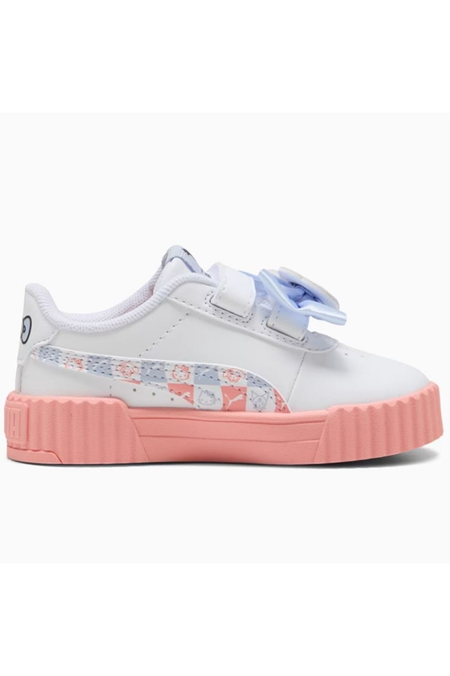 Puma 401421-01 Carina 3.0 Hello Kitty V Inf Ortopedik Bebek Spor Ayakkabı ÜRÜN HİKAYESİ PUMA x HELLO KITTY AND FRIENDS'ın bu son koleksiyonuyla yaz plaj havasına adım atın! Klasik Carina spor ayakkabımızın bu süper sevimli versiyonu, eğlenceli Hello Kitty and Friends tasarım detaylarına, sevimli bir fiyonk detayına ve küçük ayakların gün boyu rahat kalmasını sağlayan SOFTFOAM+ çorap astarına sahiptir.; ÖZELLİKLER & FAYDALAR SOFTFOAM+: Ekstra kalın topuğu sayesinde yumuşak yastıklama sağlamak üzere tasarlanmış, giyilmesi rahat çorap astarı Ayakkabının üst kısmı en az %20 geri dönüştürülmüş malzemelerden, alt kısmı ise en az %10 geri dönüştürülmüş malzemelerden üretilmiştir.; DETAYLAR Normal genişlik Sentetik üst Hızlı takıp çıkarma için cırt cırtlı kayış Doğru uyumu sağlamak için KinderFit® çorap astarı baskısı PUMA x HELLO KITTY AND FRIENDS ortak markalama detayları PUMA Toddlers: 0 ile 4 yaş arasındaki yürümeye başlayan çocuklar için önerilir Özel ambalajında ??teslim edilir Sentetik, Tekstil, Kauçuk