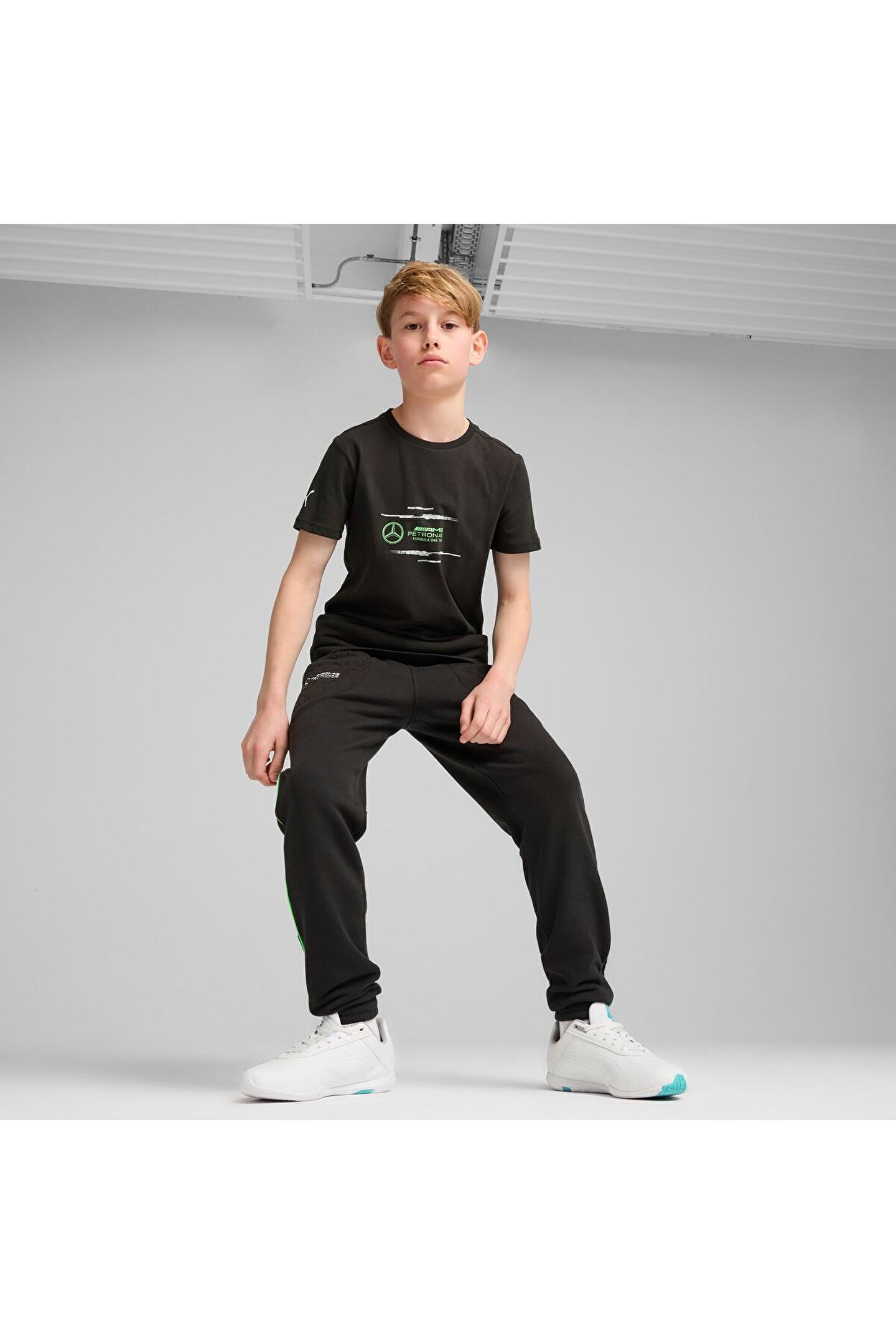 627357_01-ÜRÜN HİKAYESİ Mercedes-AMG Petronas F1® genç eşofman altıyla birlik halinde destek olun.; Kontrast detaylar ve yapılandırılmış altıgen kumaş adımlarını hızlandırır.; İç bağcıkları, pist veya tribün fark etmez kişiye özel bir uyum sağlar.; Mercedes-AMG Petronas F1® logosu ve PUMA Cat ile takıma olan bağlılığını cesurca göster.; Birlikten güç doğar - gücü açığa çıkar.; ÖZELLİKLER & FAYDALAR En az %20 geri dönüştürülmüş malzemeden üretildi DETAYLAR Normal kesim 280 gsm, Fransız havlu İç bağcıklı elastik bel Orta bel Yan fermuarlı cepler Normal boy Lastikli manşetler Cepler ve yanlarda altıgen desen oluşturan yapılandırılmış kumaş Cepler ve bacaklar boyunca kontrast renk detayları PUMA Youth stili: 8-16 yaş aralığındaki daha büyük çocuklara tavsiye edilir.