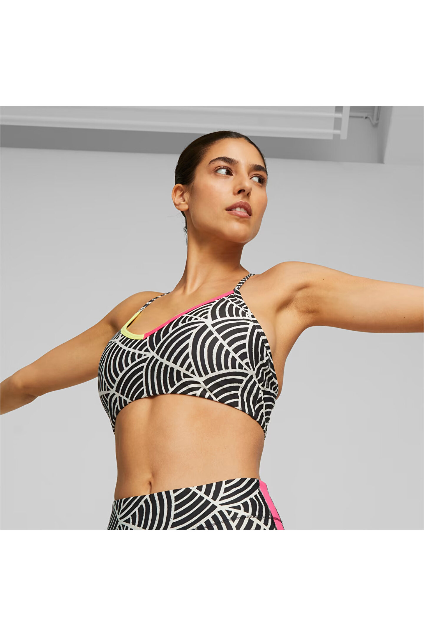 ÜRÜN HİKAYESİ Kadın sanatçı serimiz heyecan verici bir işbirliği ile devam ediyor.; Süper model Liya Kebede tarafından kurulan lemlem, Afrika çapında ekonomik büyümeye ilham verirken Etiyopya‘daki yerel dokuma sanatını sürdürmeye odaklanan hazır giyim markasıdır.; Geri dönüştürülmüş malzemeler, çarpıcı baskılar ve yüksek performans sağlayan dryCELL teknolojisi kullanılarak üretilen bu cesur spor sütyeni kesinlikle çok çarpıcı.; ÖZELLİKLER & FAYDALAR Geri Dönüştürülmüş İçerik: Daha iyi bir geleceğe doğru bir adım olarak en az %20‘si geri dönüştürülmüş malzemeden üretilmiştir; dryCELL: Vücuttan nemi emecek ve spor yaparken terden arındıracak şekilde tasarlanmış performans teknolojisi; DETAYLAR Ayarlanabilir askı; Süblime tüm yüzeyde baskı; PUMA‘nın imza tasarım öğeleri;