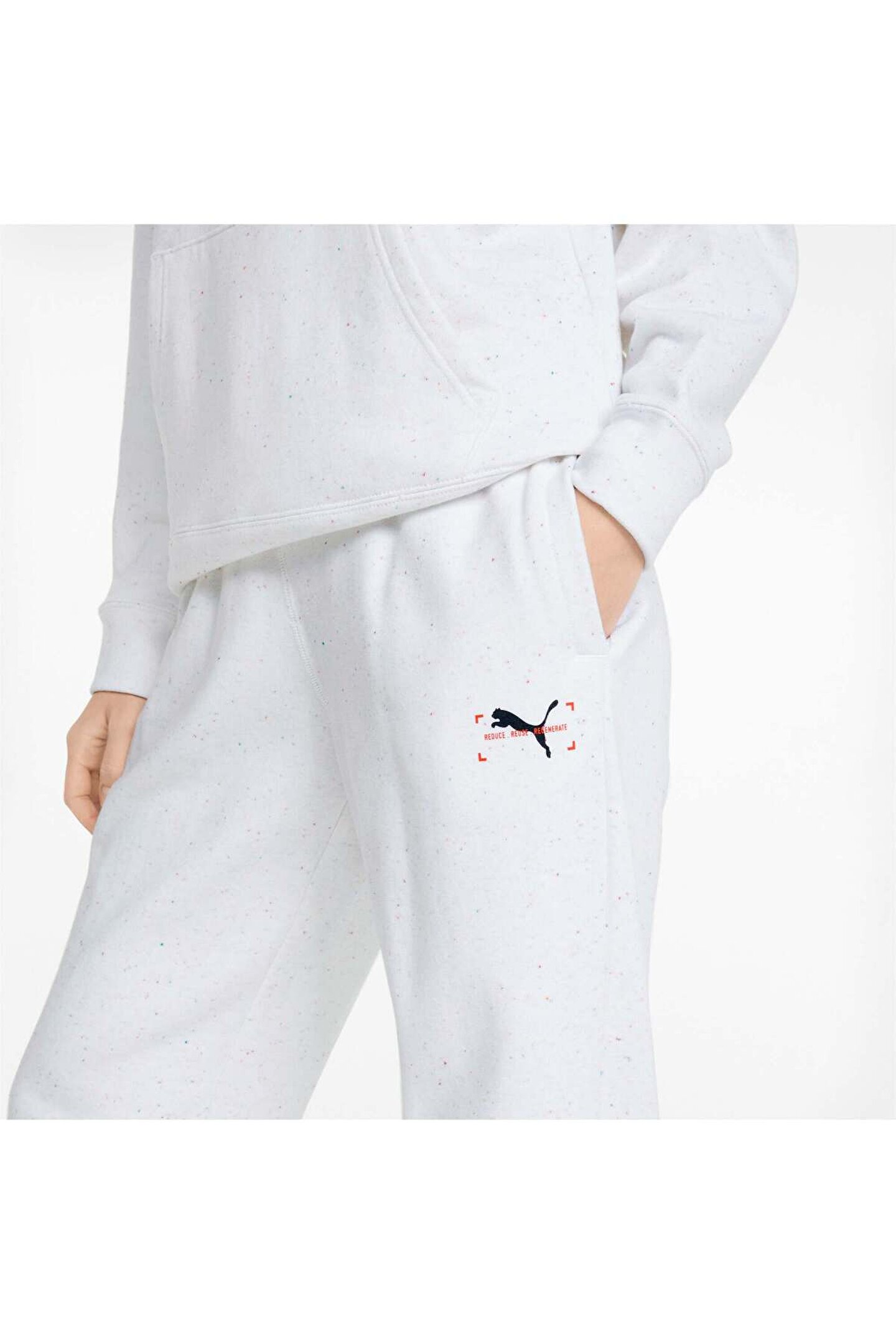 533965_65-ÜRÜN HİKAYESİ Kişiye özel uyum sağlayan kordonlu bele ve tüm temel ihtiyaçlara kolay erişim için yan ceplere sahip RE:Collection rahat kesim kadın eşofman altımız ile keyfine bak.; Doğaya karşı olan sorumluluğumuzu yerine getirmemiz gerektiğine inanıyoruz: etkimizi azaltalım, kaynaklarımıza saygı gösterelim ve materyallerimizi yenileyelim.; ÖZELLİKLER + FAYDALAR Geri Dönüştürülmüş Malzeme İçerir: Geri dönüştürülmüş liflerden üretilmiştir.; PUMA'nın çevresel etkiyi azaltmak adına bulduğu çözümlerinden biri.; DETAYLAR Rahat kesim Dıştan ipli elastik bel bandı Yan cepler Sol bacakta "Reduce.; Reuse.; Recycle" pigment baskılı PUMA Cat Logosu 100% Pamuk