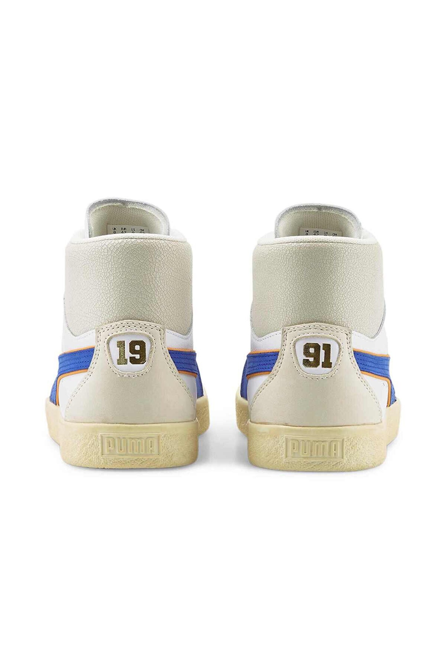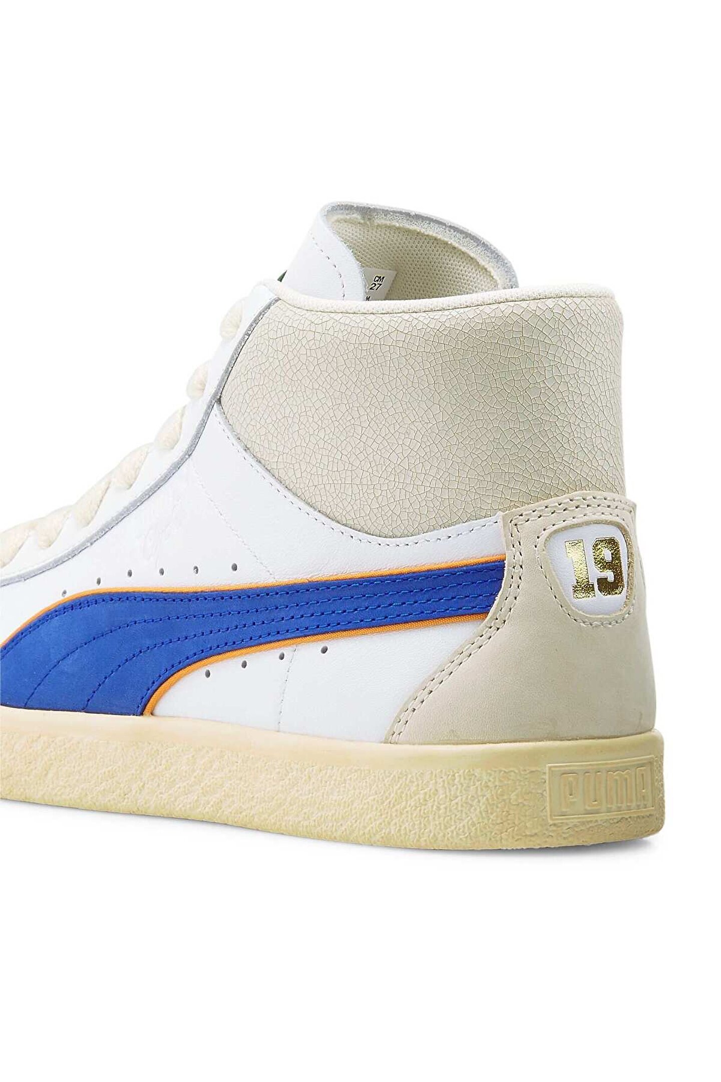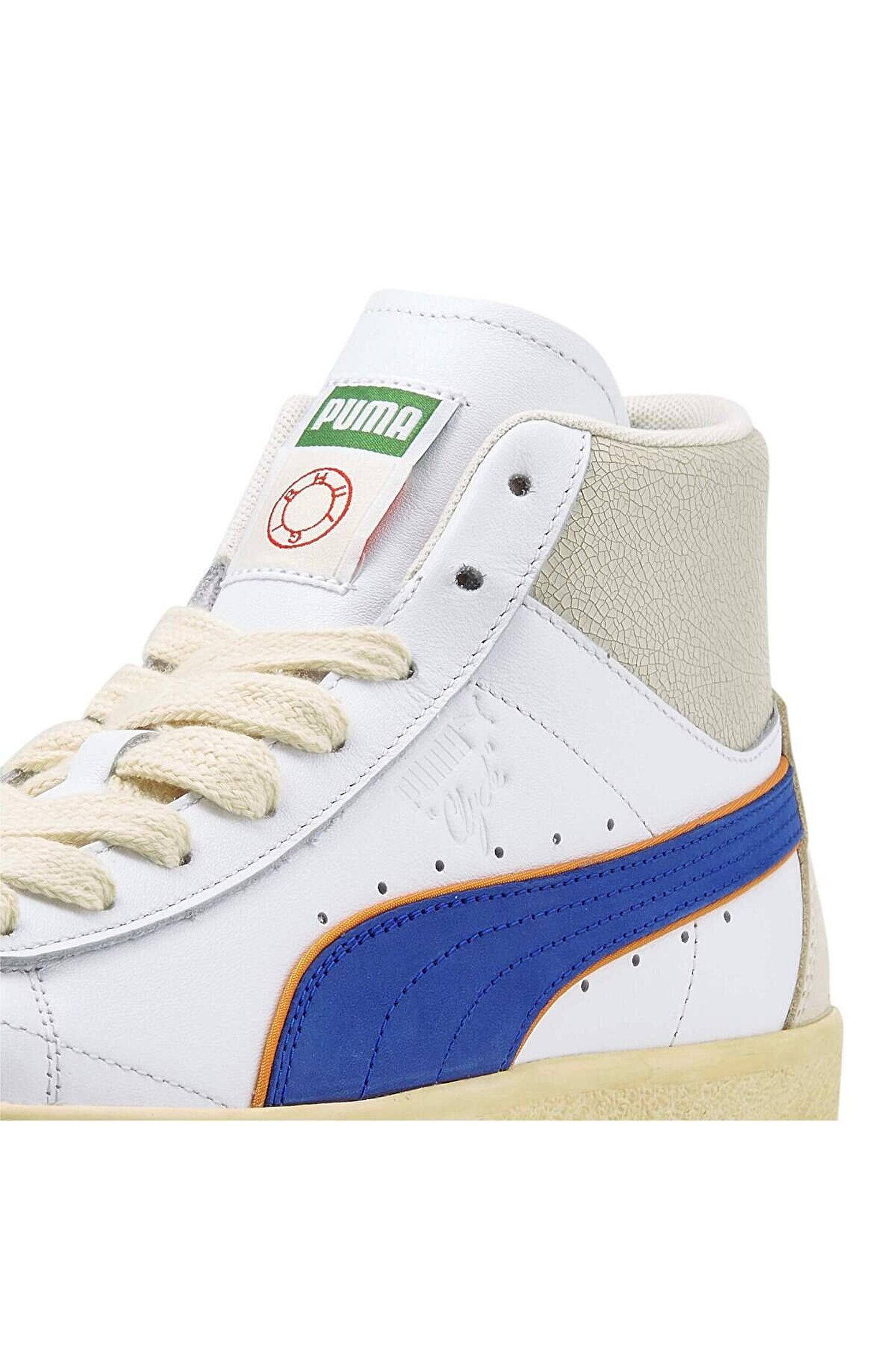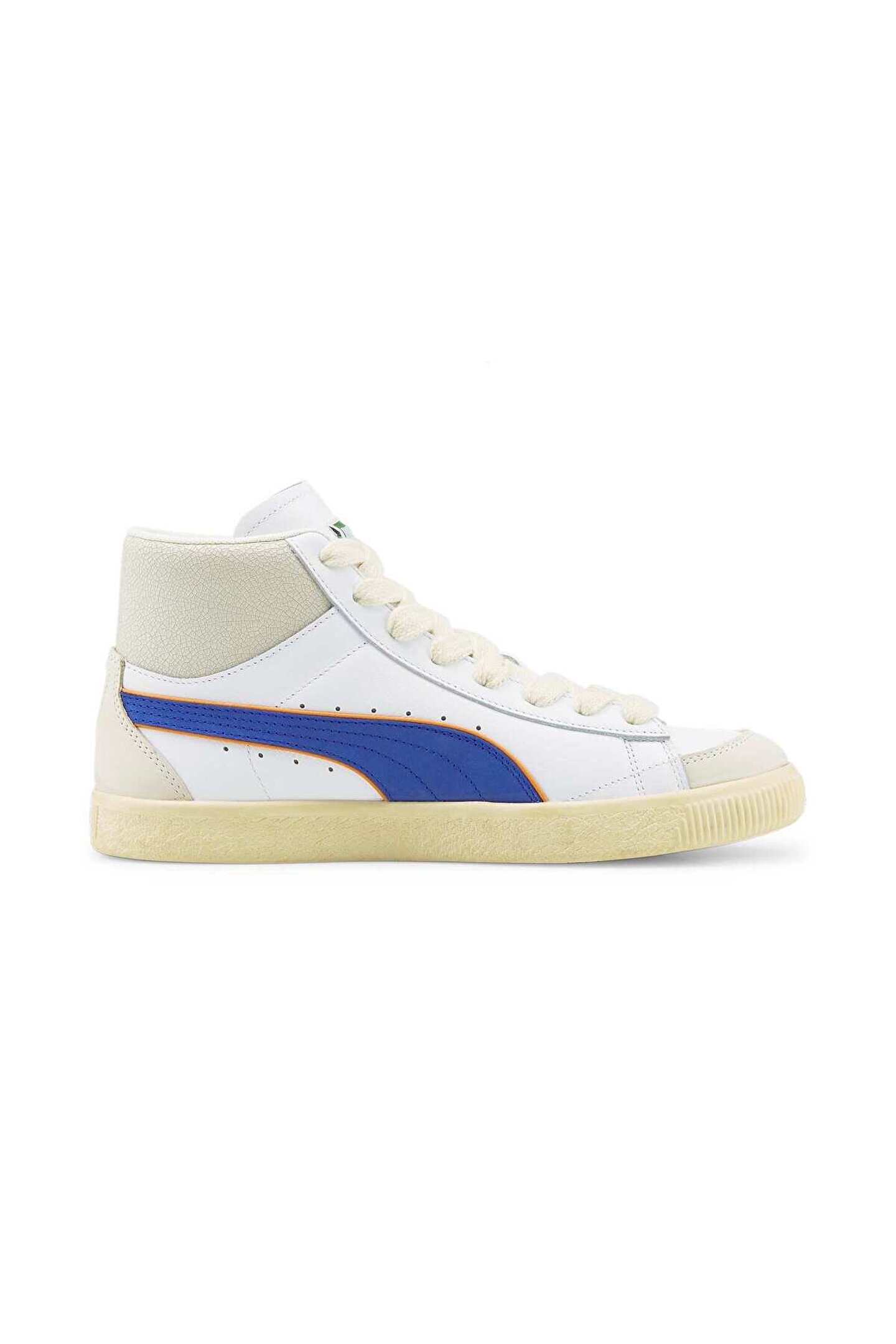 391335_01-ÜRÜN HAKKINDA PUMA x RHUIGI, sokak giyim tasarımcısı Rhuigi‘nin rap sevgisinin merceğinden 1970‘lerde hip-hop‘un çılgın ilk günlerine ışınlanmamızı sağlıyor ve PUMA‘nın NYC‘den dünyaya yayılacak stili şekillendirmeye nasıl yardımcı olduğunu gösteren nitelikte bir tasarımı bizlere sunuyor.; Clyde‘ın bu modeli o efsanevi dönemi kutluyor, bilekli yapısı ve deri üst yüzeyiyle Rhuigi‘nin imza estetiğini taşıyor.; ÖZELLİKLER & FAYDALAR Bu üründe kullanılan deri, çevreye duyarlı deri üretiminden gelir, Leather Working Group protokolü ile denetlenir ve sertifikalandırılır.; (www.; leatherworkinggroup.; com) DETAYLAR Bilekli yapı Deri üst yüzey Kauçuk orta taban Kauçuk dış taban Orta ve yanlarda PUMA Formstrip deseni PUMA x RHUIGI iş birliği logosu