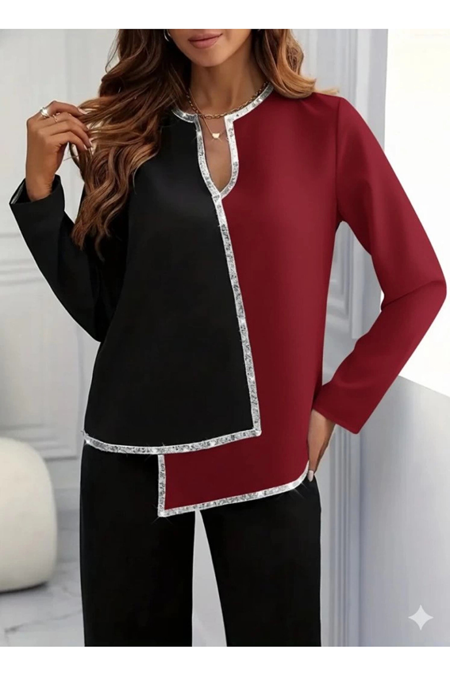 Queene Dreams MDB Kadın Uzun Kollu V Yakalı Pul Payet Işlemeli Ithal Krep Bluz