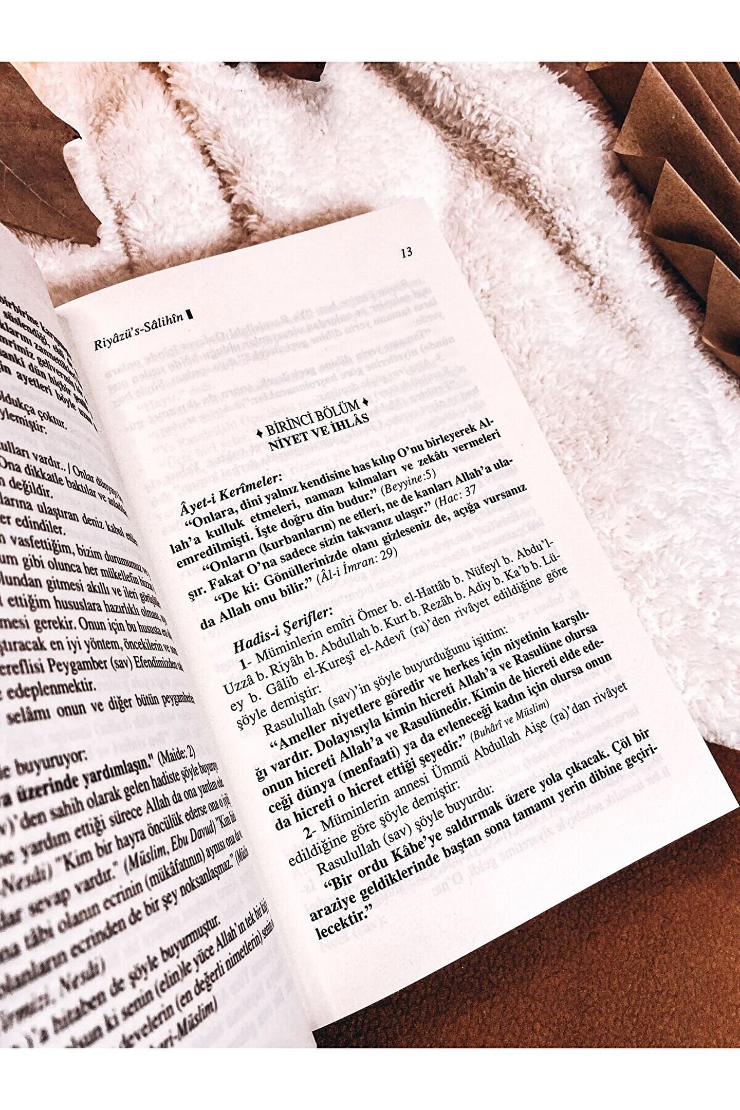 Büyük İslam alimi İmam Nevevi’nin asırlardır ellerden düşmeyen Riyaz’üs Salihin isimli muhteşem eseri, 371 bölümden oluşan ve İslam dünyasında en çok okunan müstesna bir hadis kitabıdır; Nevevi, önsözünde kitabını şöyle takdim ediyor:“Sahibini (okuyanı) ahret yoluna ileten, zahiri ve batini edepleri elde etmesini sağlayan, tergib, terhib ve bu yola girmiş olanların zühd, nefis terbiyesi, ahlakın güzelleştirilmesi, kalplerin temizlenip tedavi edilmesi, azaların günah işlemekten korunması, manevi eğriliklerin giderilmesi ve daha başka ariflerin matsatlarıyla ilgili bütün edepleri ihtiva eden sahih hadislerden oluşan muhtasar (bir kitap) yazmayı istedim; Burada ancak meşhur hadis kitaplarında yer alan, manası açık sahih hadisleri zikrettim; Bölüm başlarını Aziz Kur’an’dan ayet; i kerimeler ile başlattım; ” 496 Sayfa Karton Kapak;