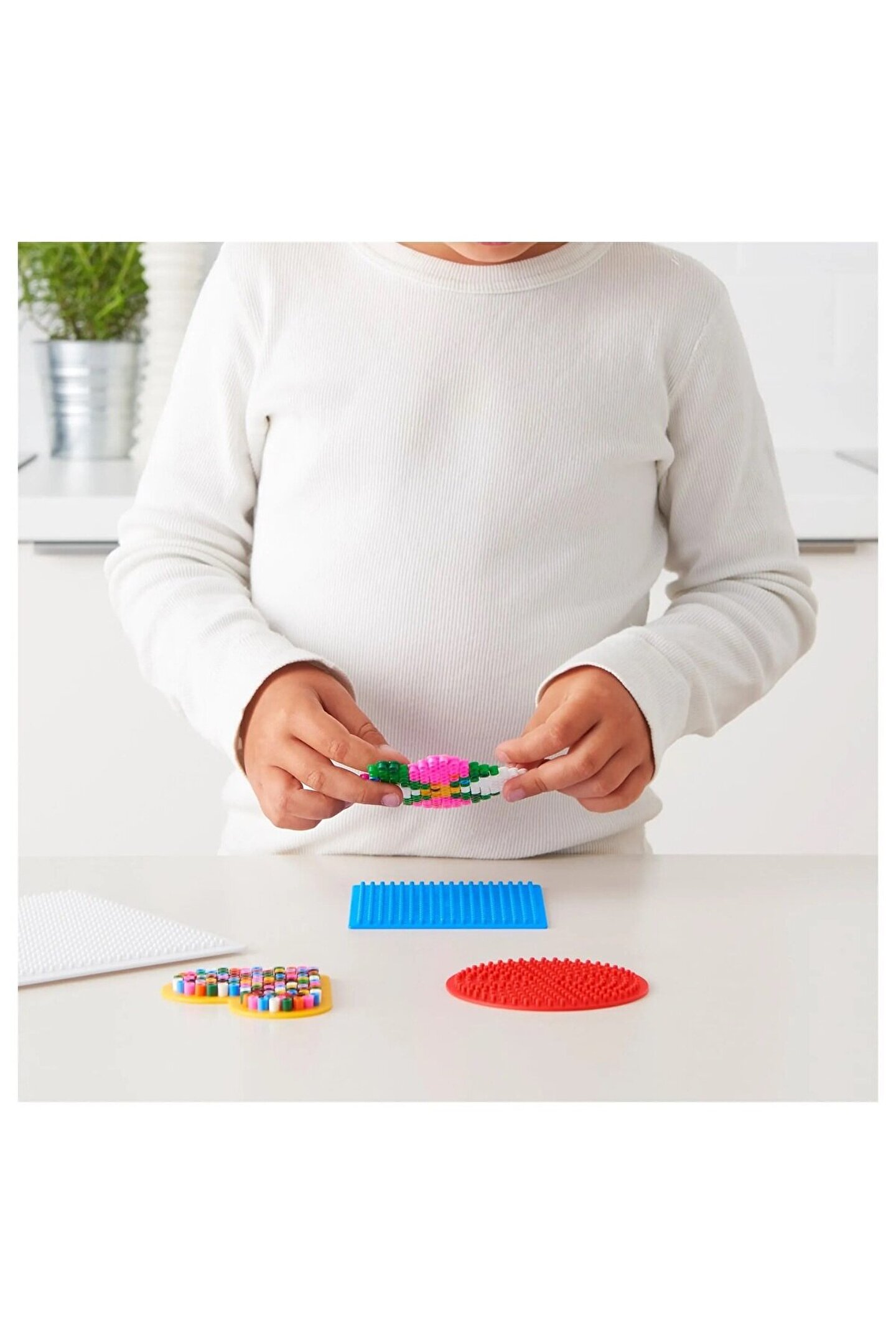 Bu boncuk şekilleri ve boncukları ile hayal gücünüzü serbest bırakabilir ve kendi küçük sanat eserlerinizi yaratabilirsiniz. Belki en iyi arkadaş için kırmızı bir kalp ya da babanız için rengarenk bir çiçek?