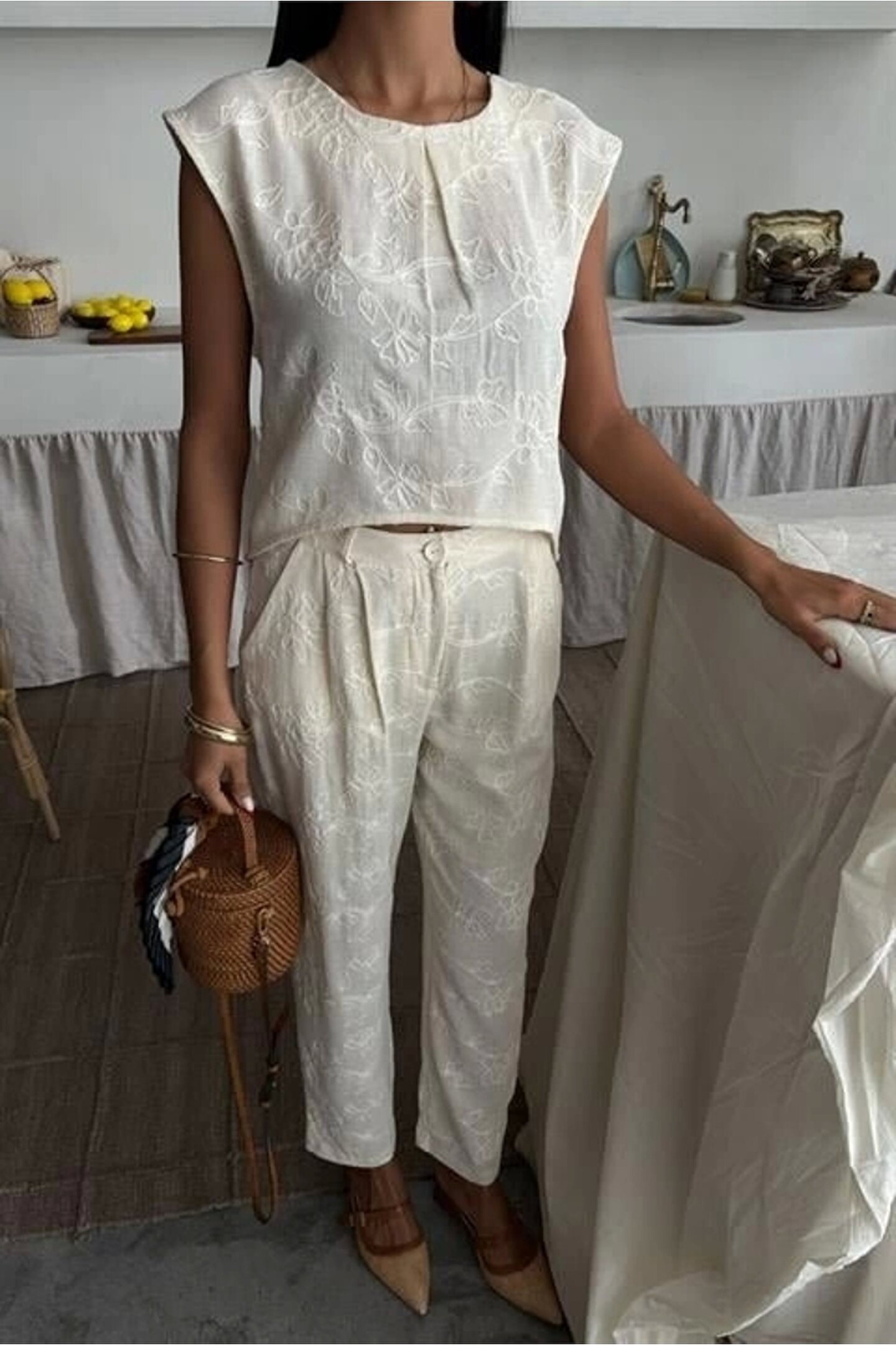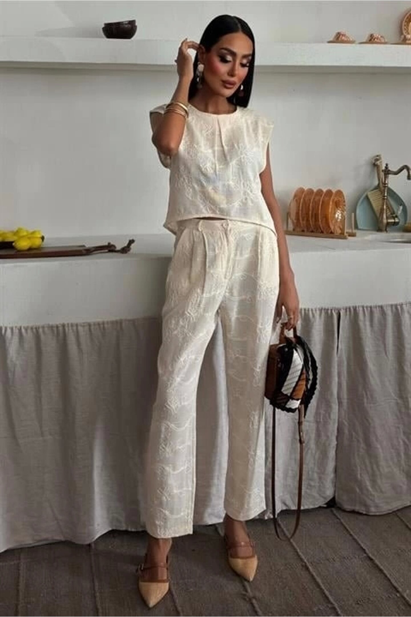 REKA MODA Shalina Süzüne Nakışlı Crop Takım 9796-08