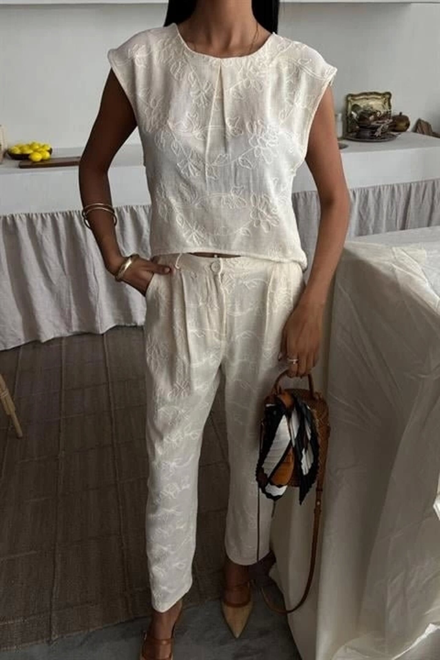 Shalina Süzüne Nakışlı Crop Takım 9796-08