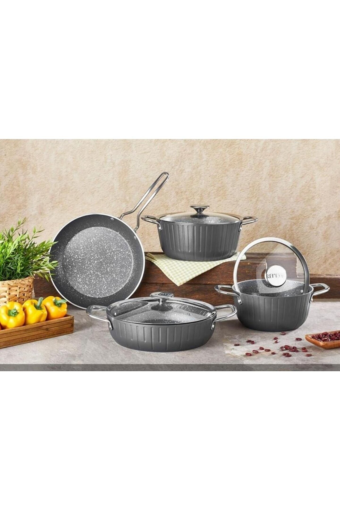 Etna Yanmaz Yapışmaz Tencere Seti 7 Parça-gri