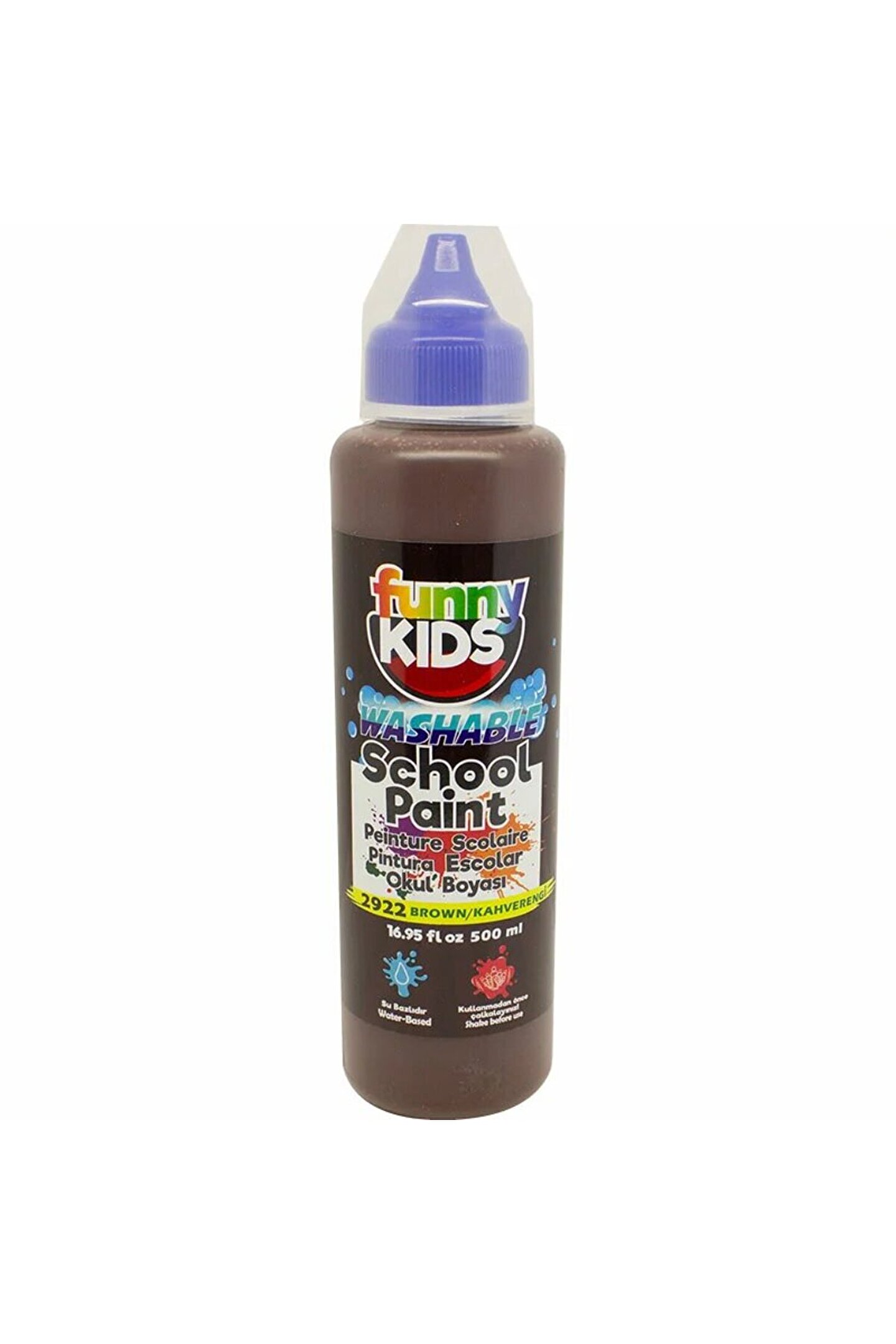 Yıkanabilir Okul Boya Su Bazlıdır Su eklemeye gerek olmayan kullanıma hazır kıvamlı ve pratik kapağı ile kolay kullanım sağlayan özel boyalardır.; Renk varyasyonları elde etmek için birbirleri ile karıştırılabilirler.; Her türlü meteryal üzerine uygulanabilirler; Kağıt - Polyester - Ahşap - Kumaş vb.; Kokusuz ve zararlı katkı maddesi içermez.; Elden ve birçok kumaştan su ve sabun yardımıyla kolayca temizlenebilir.; 500ml.