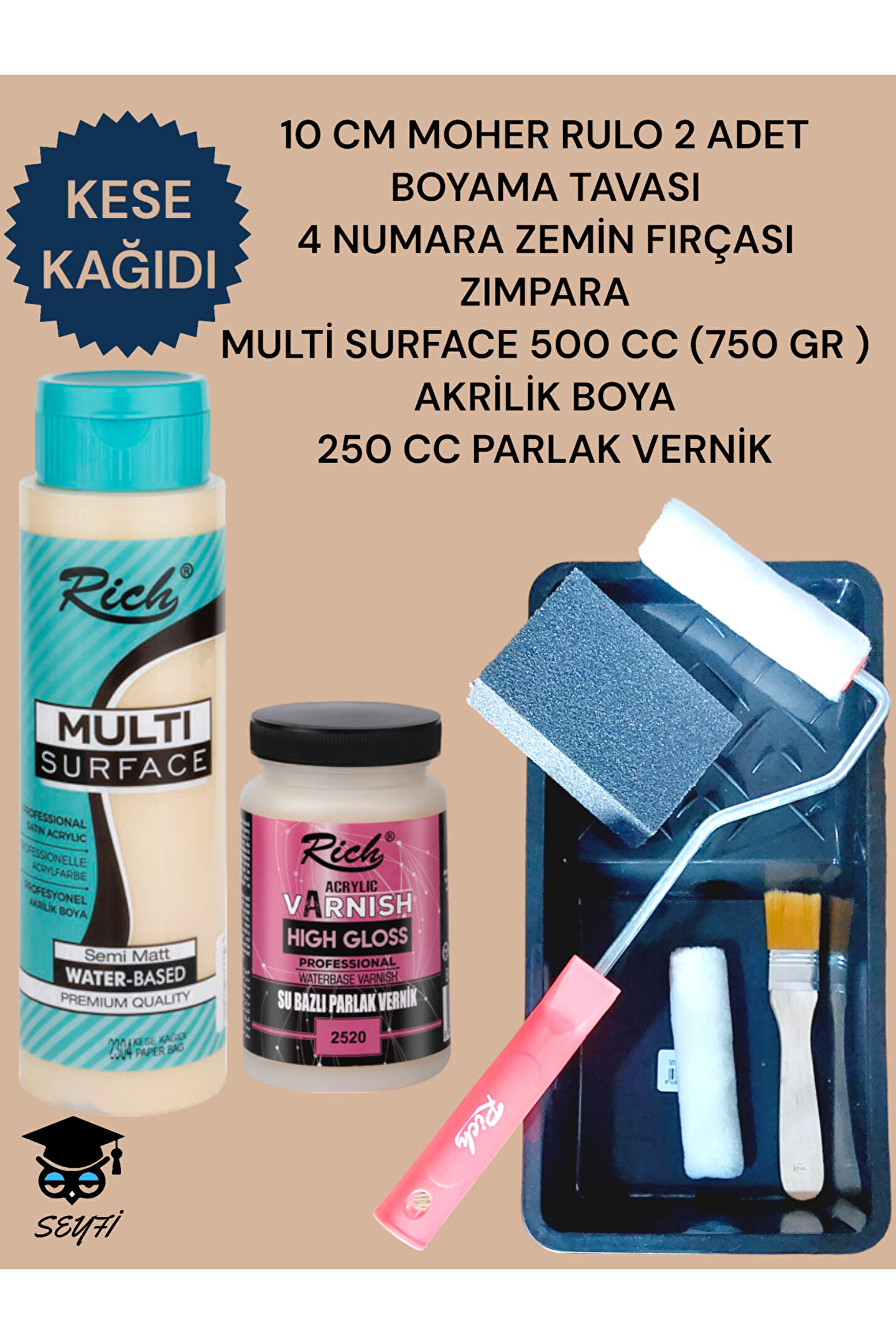 Multi Surface 500cc (750 Gr) Akrilik Boyama Seti TAVA RULO FIRÇA ZIMPARA VERNİK DOLAP BOYAMA SETİ