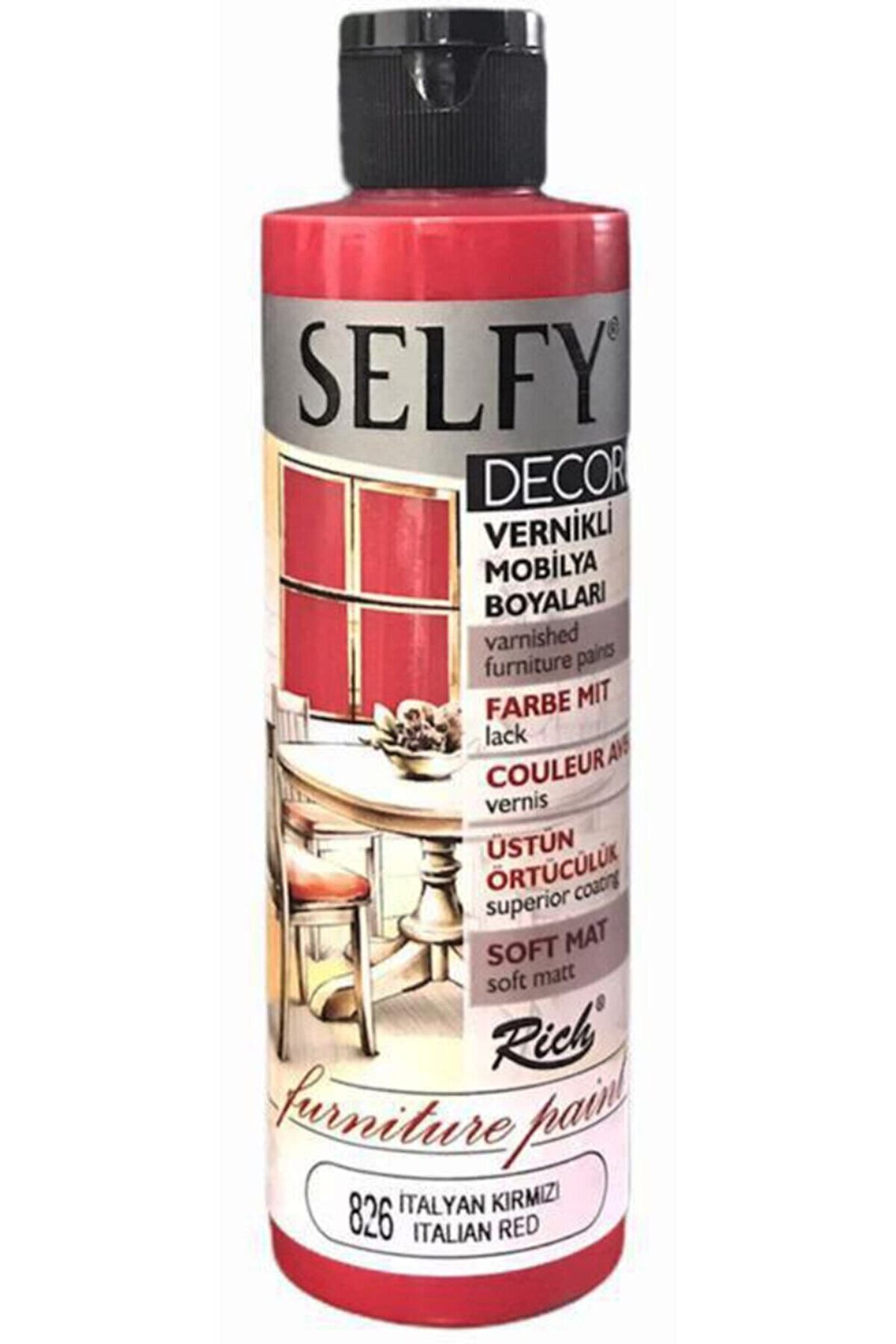 Selfy Decor Vernikli Boya 240cc - İtalyan Kırmızı 826