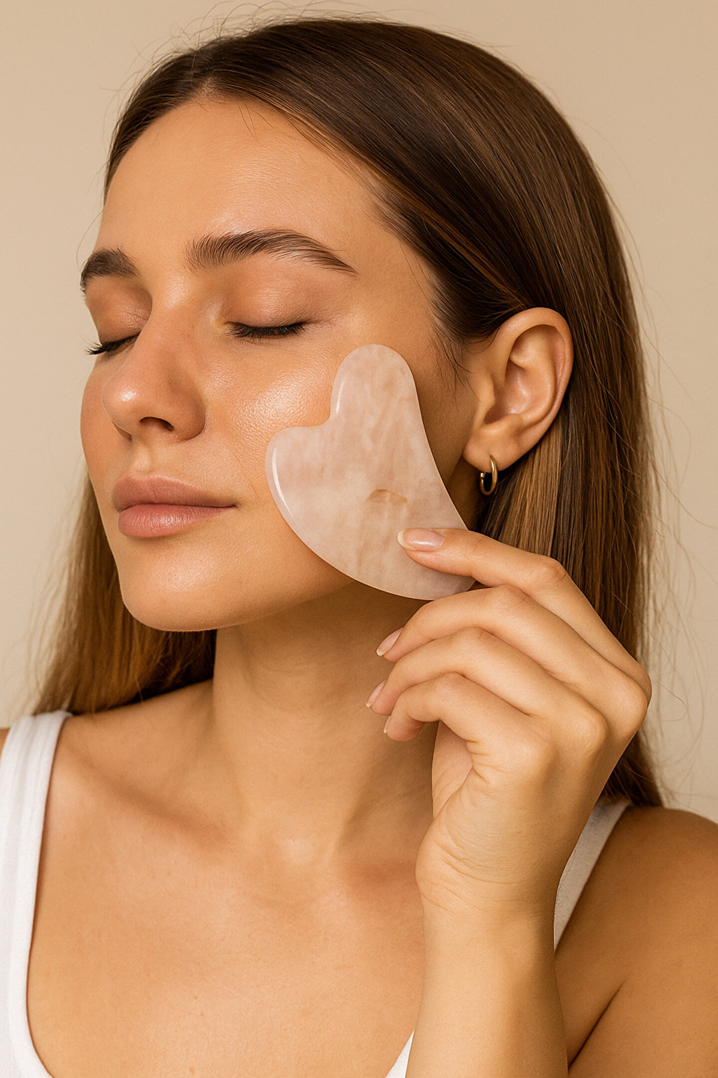 Doğal taşlardan üretilen Gua Sha masaj aleti, yüz ve boyun bölgesinde rahatlatıcı bir masaj deneyimi sunar.