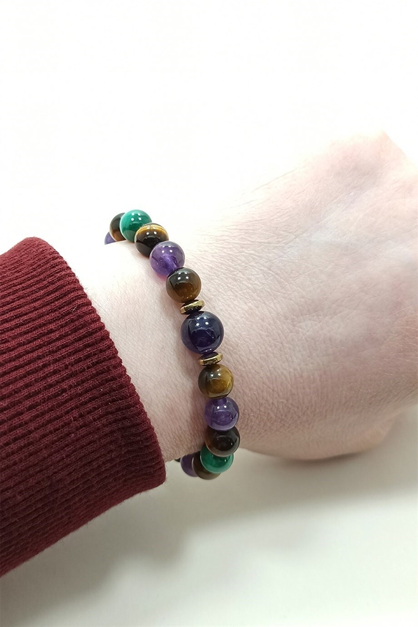 Rio Takı Migren Bilekliği Ametist Malahit Doğal Taş Bileklik Rio