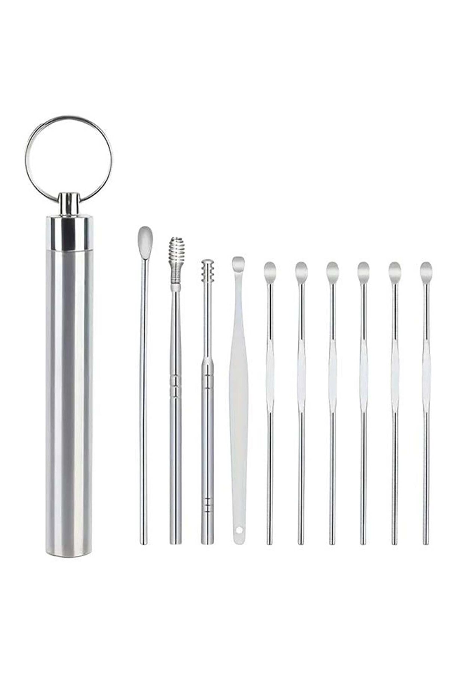 MT-27132 Paslanmaz Çelik Kulak Temizleyici Çubuk Set; dayanıklı ve paslanmaz malzemden üretilmiş olup, sterilize etmesi oldukça kolaydır. Kolay kullanımı sayesinde kulak temizliğini rahat hale getirir. Ev kullanımı için ideal olan bu ürün ergonomik tasarımı ve anahtar halkası sayesinde çantada, anahtarlıkta kolayca taşınabilir.