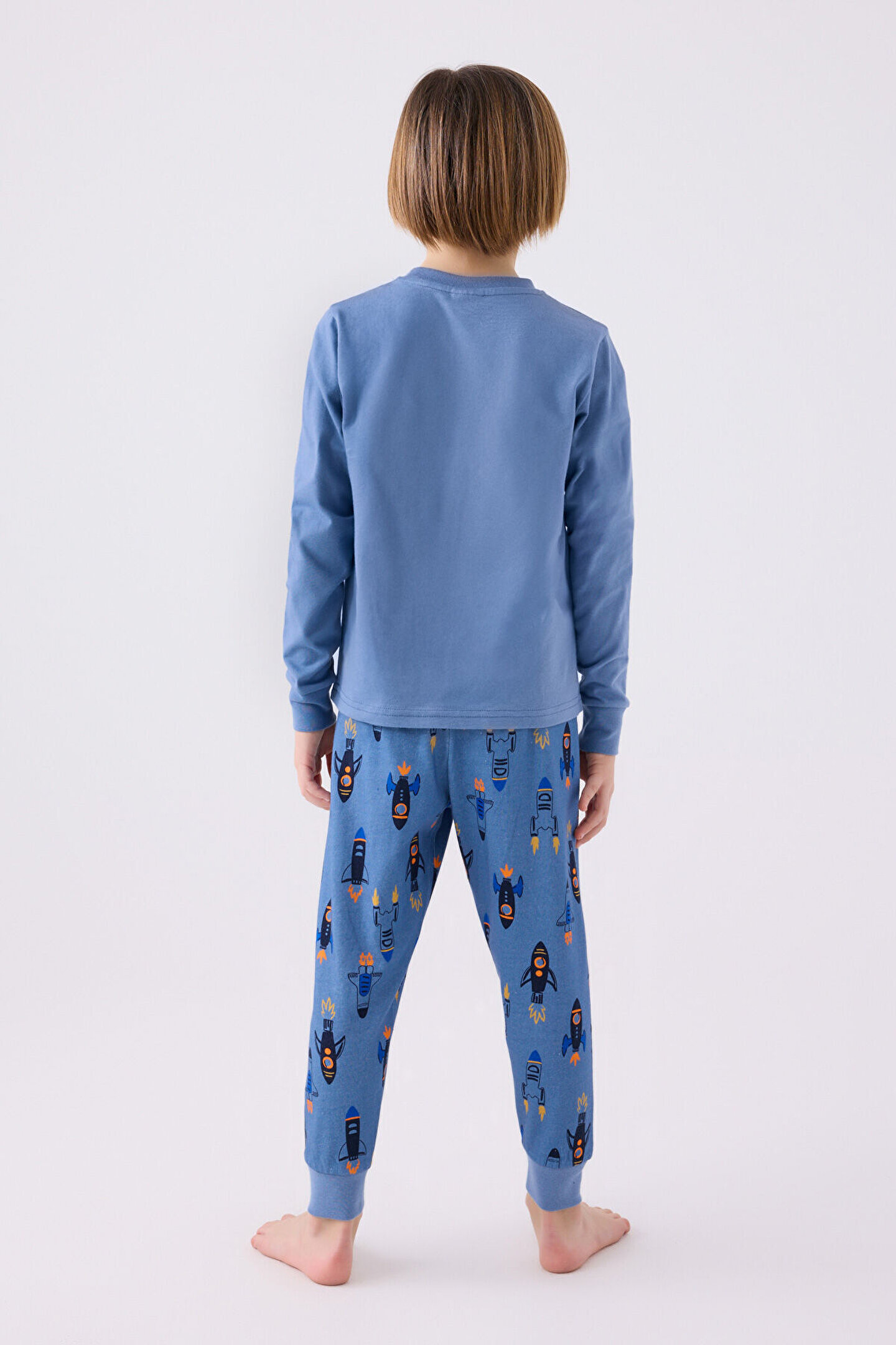 Erkek Çocuk Mavi Uzun Kol Pijama Takım