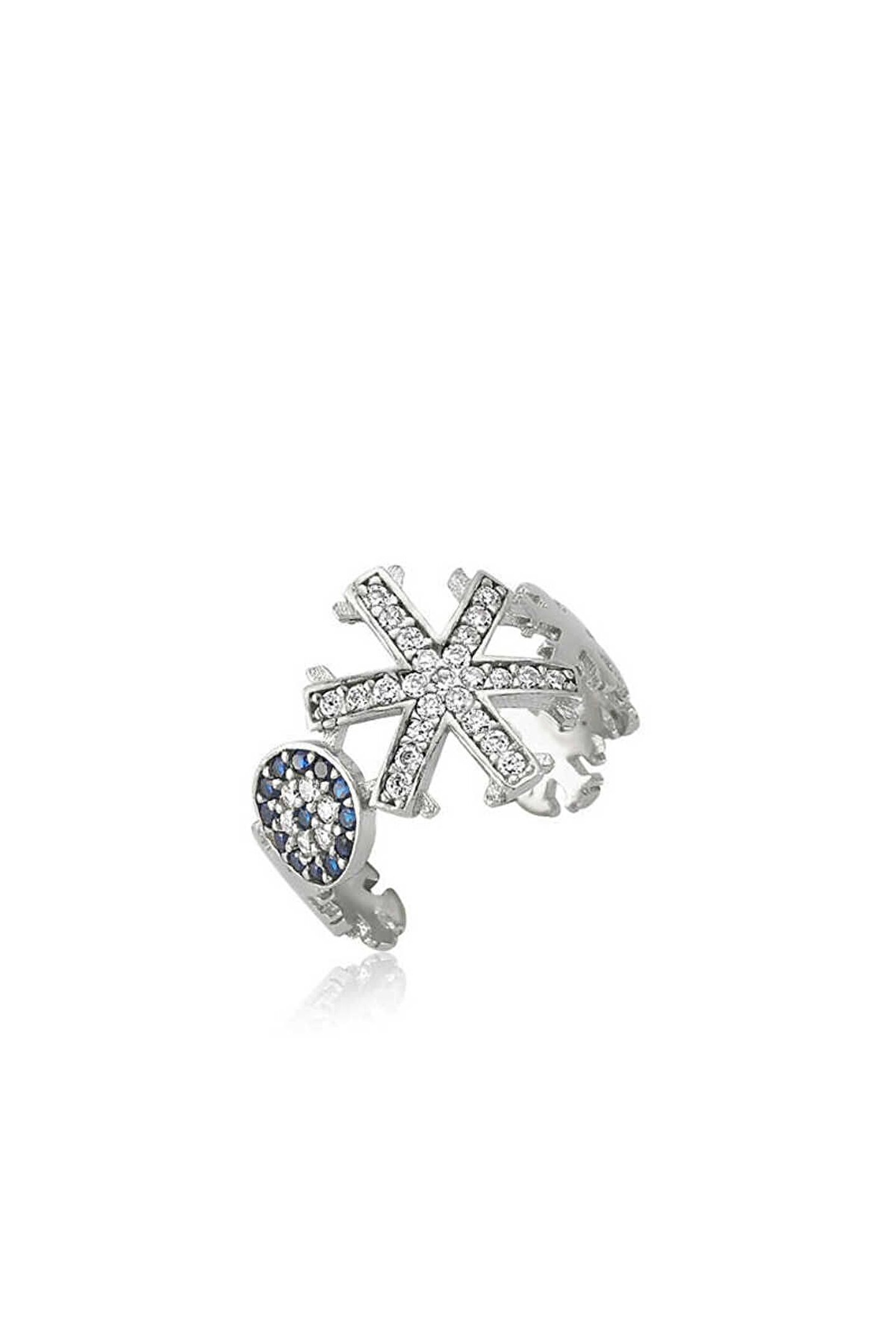 Samur Parti Parti Aksesuar & Kostüm 925 Ayar Gümüş Nazarlı Kar Tanesi Ayarlamalı Yüzük