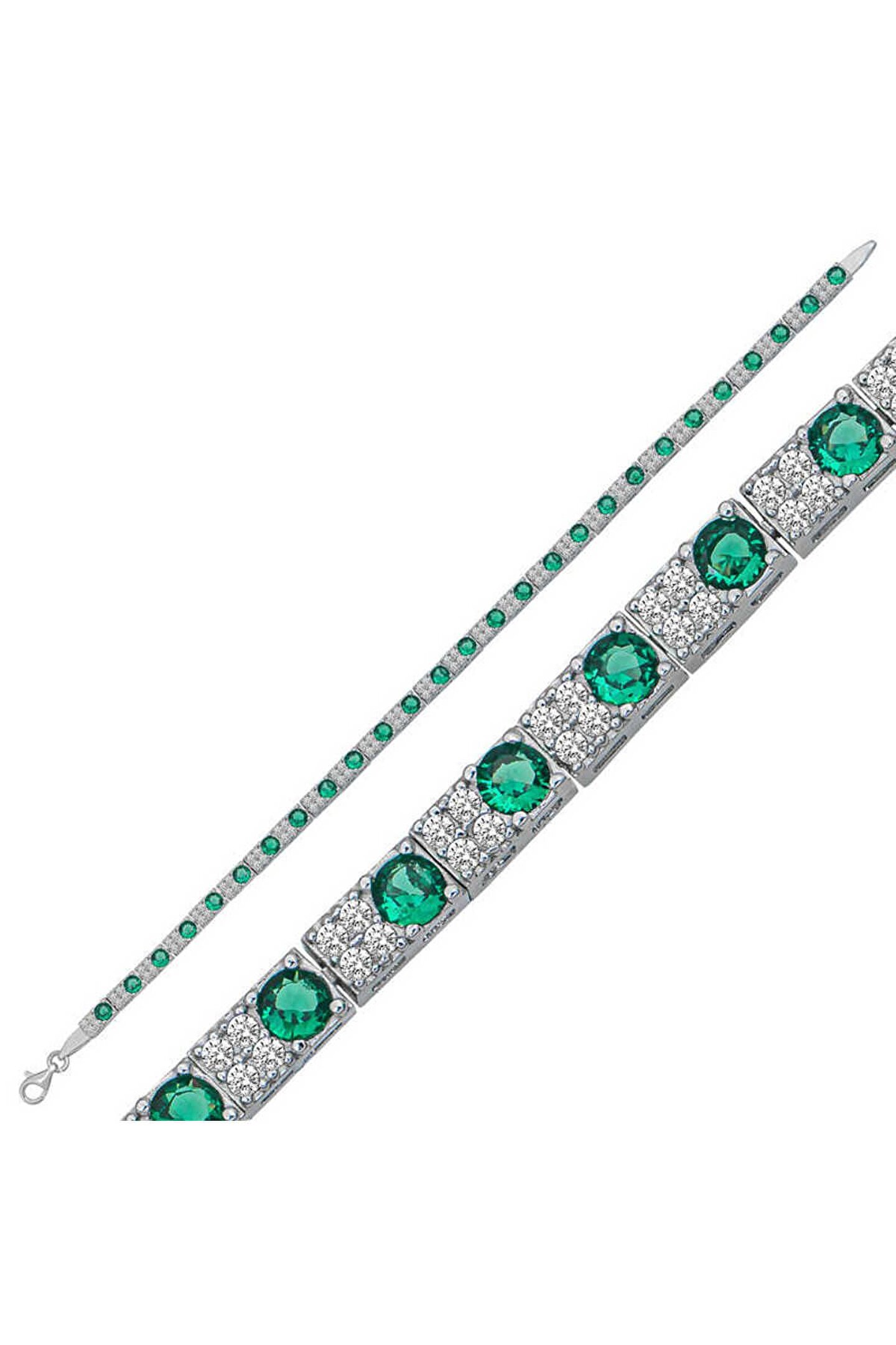 Samur Parti Parti Aksesuar & Kostüm 925 Ayar Gümüş Yeşil Beyaz Taşlı Su Yolu Kadın Bileklik