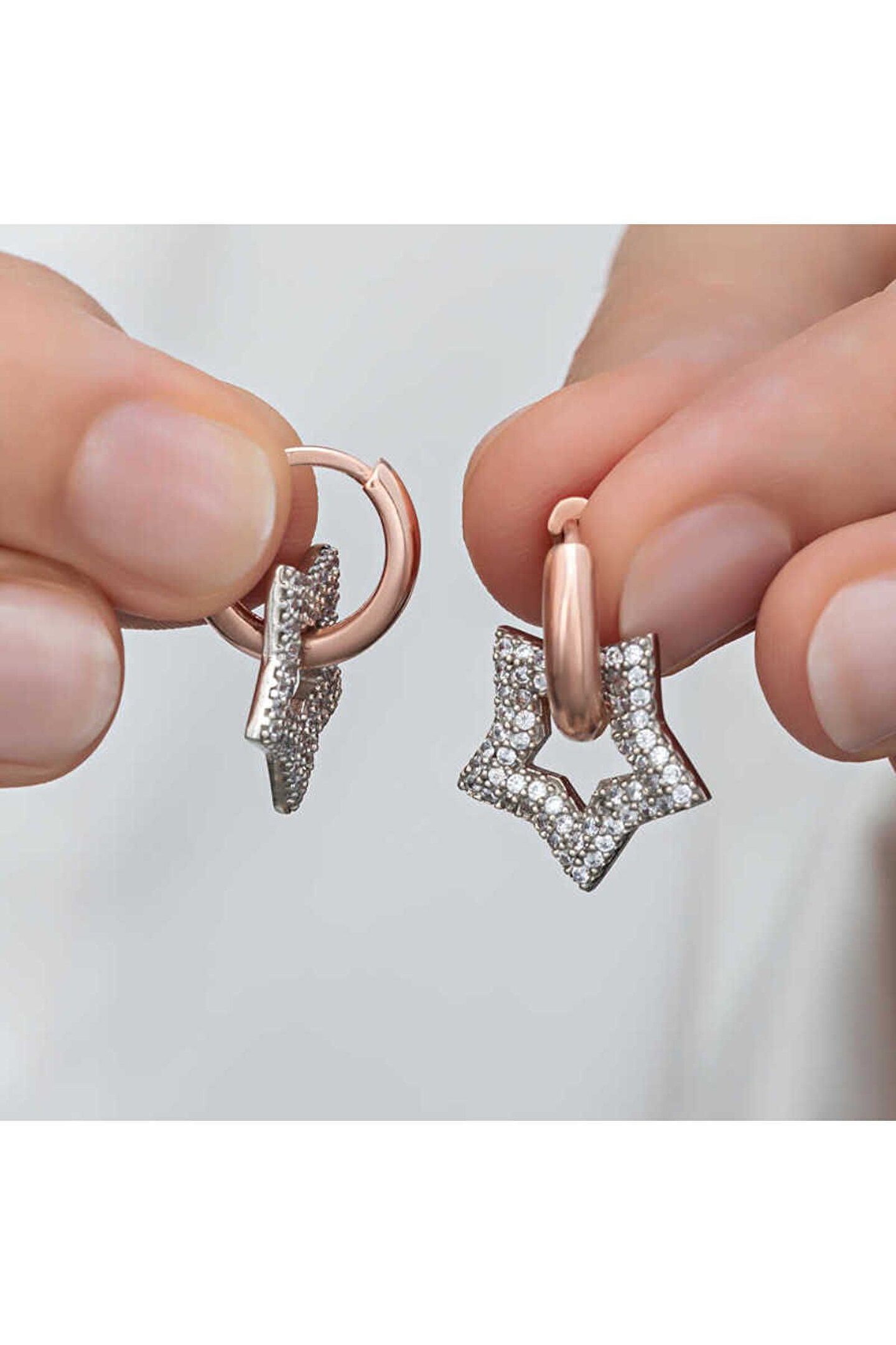 Samur Parti Parti Aksesuar & Kostüm Gümüş Rose Sallantılı Yıldız Kadın Küpe